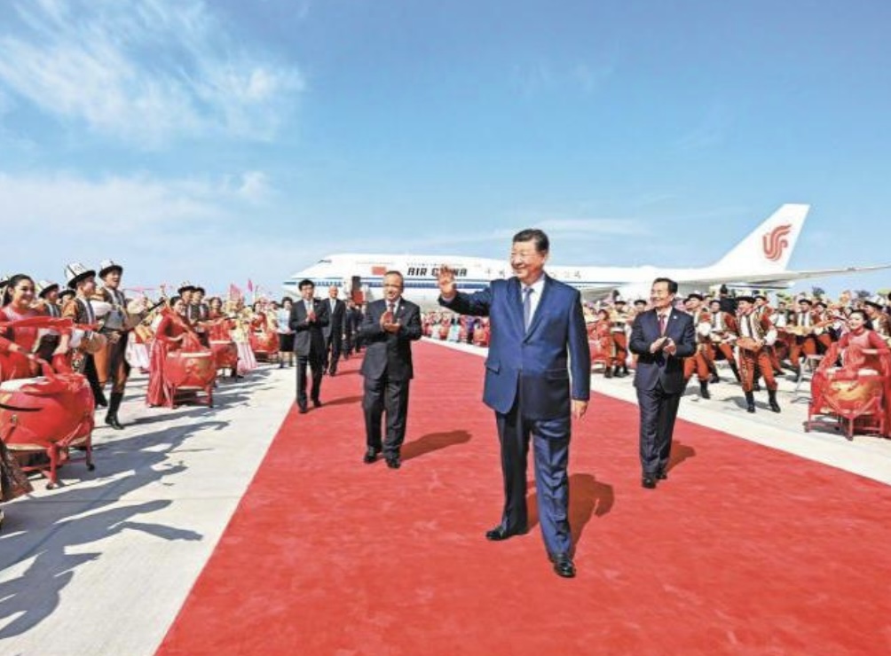 周二(2025年9月23日),习近平总书记抵达新疆维吾尔自治区乌鲁木齐,出席自治区成立70周年纪念活动,向欢迎人群挥手致意。