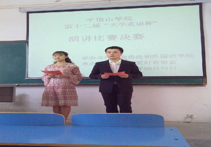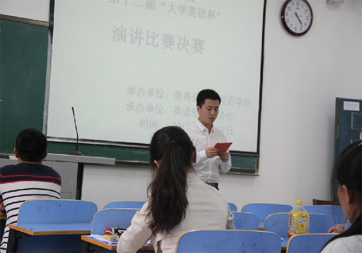 5月19日下午两点钟,太阳tyc151cc第十二届“大学英语杯”演讲比赛决赛在图书馆多媒体教室303拉开了序幕。本次演讲比赛由太阳集团tyc151cc播音主持艺术专业(英文方向)学生主持,大学生英语爱好者协会协助开展赛事工作。