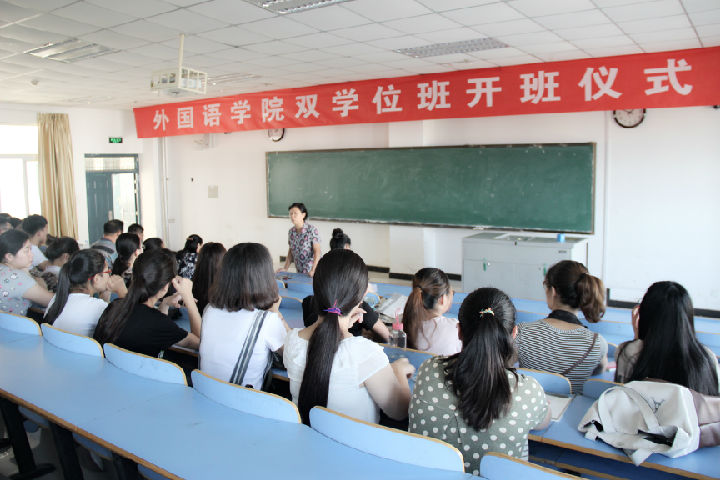 2016年9月2日下午,太阳集团tyc151cc双学位班开班仪式在图书馆501教室顺利举行。韩福领副院长主持开班仪式,林萍院长和单满菊书记分别讲话,表达了对辅修英语专业学位学生的大力欢迎和殷切希望。本届英语专业双学位班共招生66人,分为2个授课班级。学生需在三年内完成55个学分的课程学习,其中包括17门专业必修课、4门专业选修课和毕业论文设计。本学期的授课工作已于9月3日正式开始,授课秩序井然,教学效果良好。