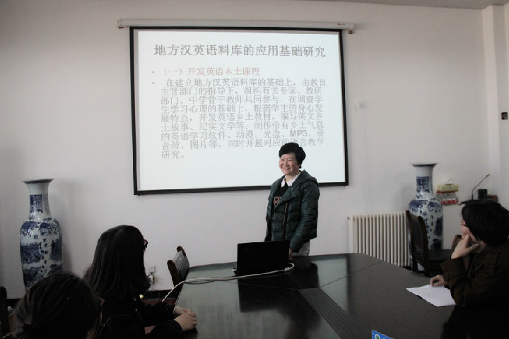 李彩霞老师从自己在北京大学访学期间的所学,结合自己多年来的教育理论学习、学术交流、科研成果、教学经验和教学实践,介绍了地方汉英语料库的概念、应用价值、社会意义等,并对其可行性构建模式进行探讨。报告会上,李彩霞老师还和在座教师进行了互动交流,气氛良好,收到了应有的效果。