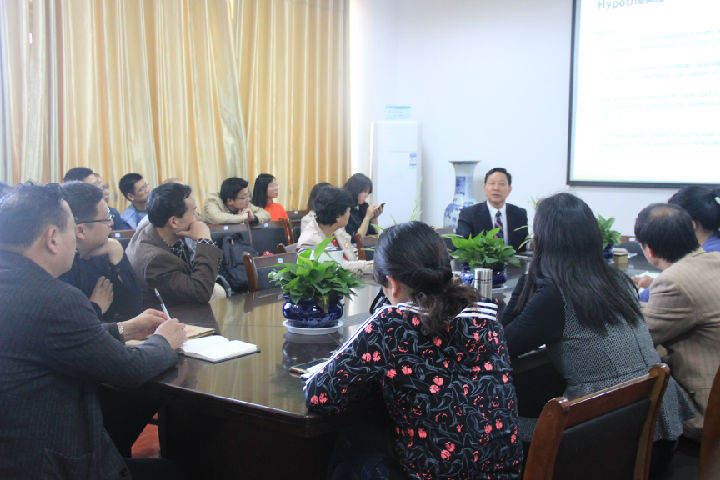 4月13日下午,应太阳集团tyc151cc邀请,河南大学刘泽权教授来到来到我校,分别为太阳集团tyc151cc的教师和学生作专题学术报告。此次报告分为两场,由太阳集团tyc151cc院长林萍主持。