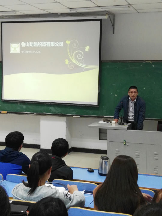 2017年4月25日下午四点至六点,我院校企合作企业,河南劲酷织造有限公司电子商务运营中心总监李鹏举应邀为我院13,14,15级英语专业(商务英语方向)和16级商务英语专业的同学做了一场精彩的题为《携手前行的太阳tyc151cc与劲酷公司》的讲座。李总监为同学们介绍了劲酷织造有限公司的详细情况及我院13级学生在劲酷公司实习情况,对同学们今后的实习工作和求职应聘及能力提升给出了中肯的建议,并欢迎我院更多优秀学生赴劲酷公司实习和就业。
