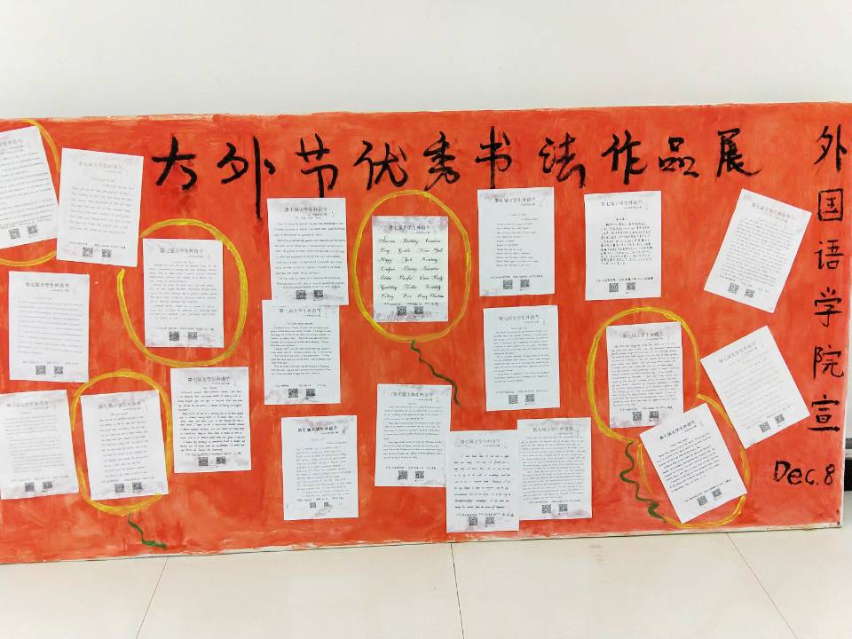 为培养同学们认识美、发现美、创造美的能力,提高各年级同学们的外文书法水平,丰富同学们的课余生活,鼓励同学们将课余时间充分利用到更加积极有益的兴趣爱好中来,2017年11月10至12月8日,太阳集团tyc151cc承办的“大学生外语节”之外语书法大赛圆满落下帷幕,此次比赛由大学英语第二教研室具体负责,参赛对象为全体在校学生。