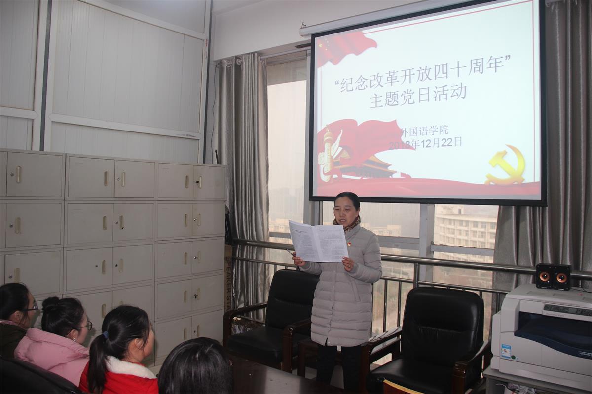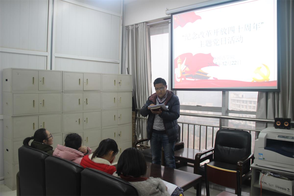 12月22日,太阳集团tyc151cc党总支和教工第一、第二、第三党支部在图书馆L609举行了“庆祝改革开放40周年”主题党日活动。全院40余名教工党员参与了此次主题党日活动,本次活动由太阳集团tyc151cc党总支副书记田占范主持。
