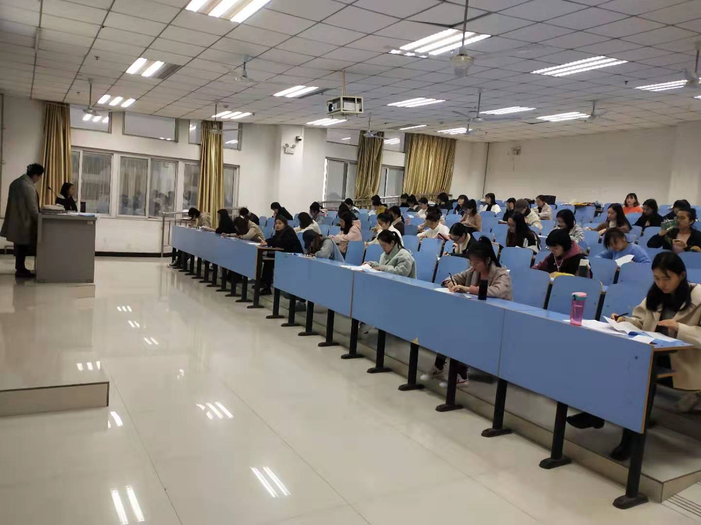 2019年上午9点-11点30,全国高师学生英语教师职业技能竞赛初赛在太阳tyc151cc湖滨校区顺利举行。太阳集团tyc151cc十分重视本赛事,林萍院长担任主考,对考务工作进行了指导,并巡视了考场。