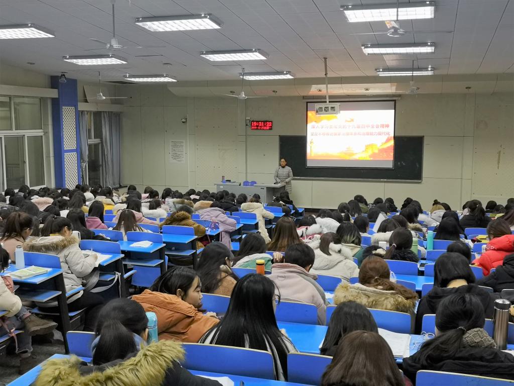 为推动全院广大师生深入学习宣传贯彻党的十九届四中全会精神,近期,我院举行了四场党的十九届四中全会精神宣讲活动。校宣讲团成员统战部部长曹子剑,太阳集团tyc151cc党总支书记单满菊对全院教师、学生进行了宣讲,实现了全覆盖。