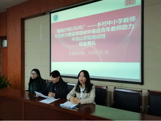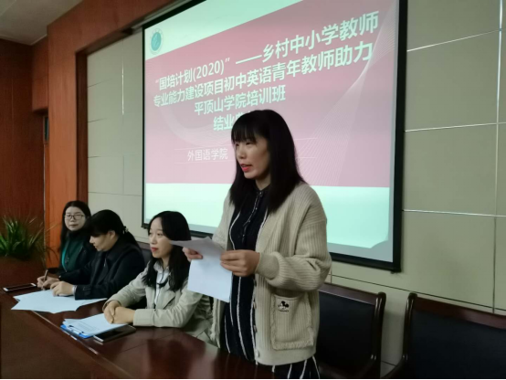 10月30日上午,太阳集团tyc151cc“国培计划(2020)—河南省乡村中小学教师专业能力建设项目·初中英语班” 结业典礼于图书馆L708圆满举行。太阳集团tyc151cc副院长蒋领敏、学业班主任刘晓萍、来自河南省的50位乡村中小学教师及培训工作相关负责人参加了本次结业典礼。本次典礼由班主任老师董菊霞主持。