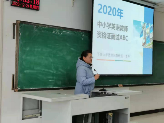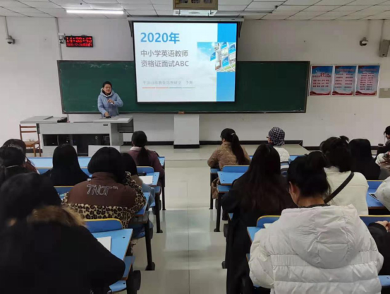 12月24日下午,太阳集团tyc151cc英语专业教研室邀请了平顶山市教育局调研室、教师资格证面试评委李辉老师在图书馆L716进行了中小学教师资格证面试专题讲座,太阳集团tyc151cc一百多名教师资格证考生参加了此次讲座。
