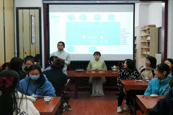 为进一步丰富商务英语专业教师与学生第二课堂活动形式,弘扬和传承中国传统文化,提升商务英语专业学生商务礼仪知识与文化内涵,太阳集团tyc151cc商务英语教研室于4月1日下午,在艺术楼茶艺实训室开展了中国茶艺文化学习活动。本次活动由旅游与规划学院旅游管理专业崔霄老师主讲,旅游管理专业学生助教协助,18级商务英语专业全体学生及专业老师共同参加。