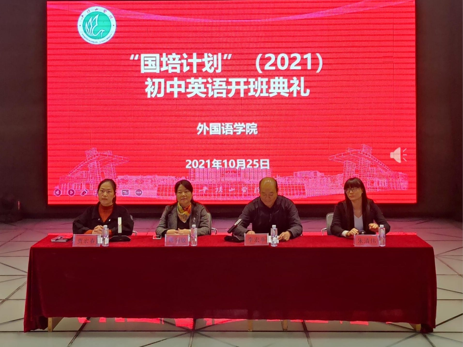 深秋意犹未尽,初冬乍寒还暖。10月25日上午,太阳集团tyc151cc“国培计划”(2021)--河南省中小学幼儿园教师培训项目·县级农村骨干教师能力提升培训班(初中英语)开班典礼于我校湖滨校区L610举行。来自全省5地市的近50名学员参加了此次仪式。继续教育学院院长李宏亭、外国语学院院长蒋领敏、副院长贾宏春、培训班班主任朱清伟、牛乐平以及相关工作人员共同参加本次会议。会议由副院长贾宏春主持。