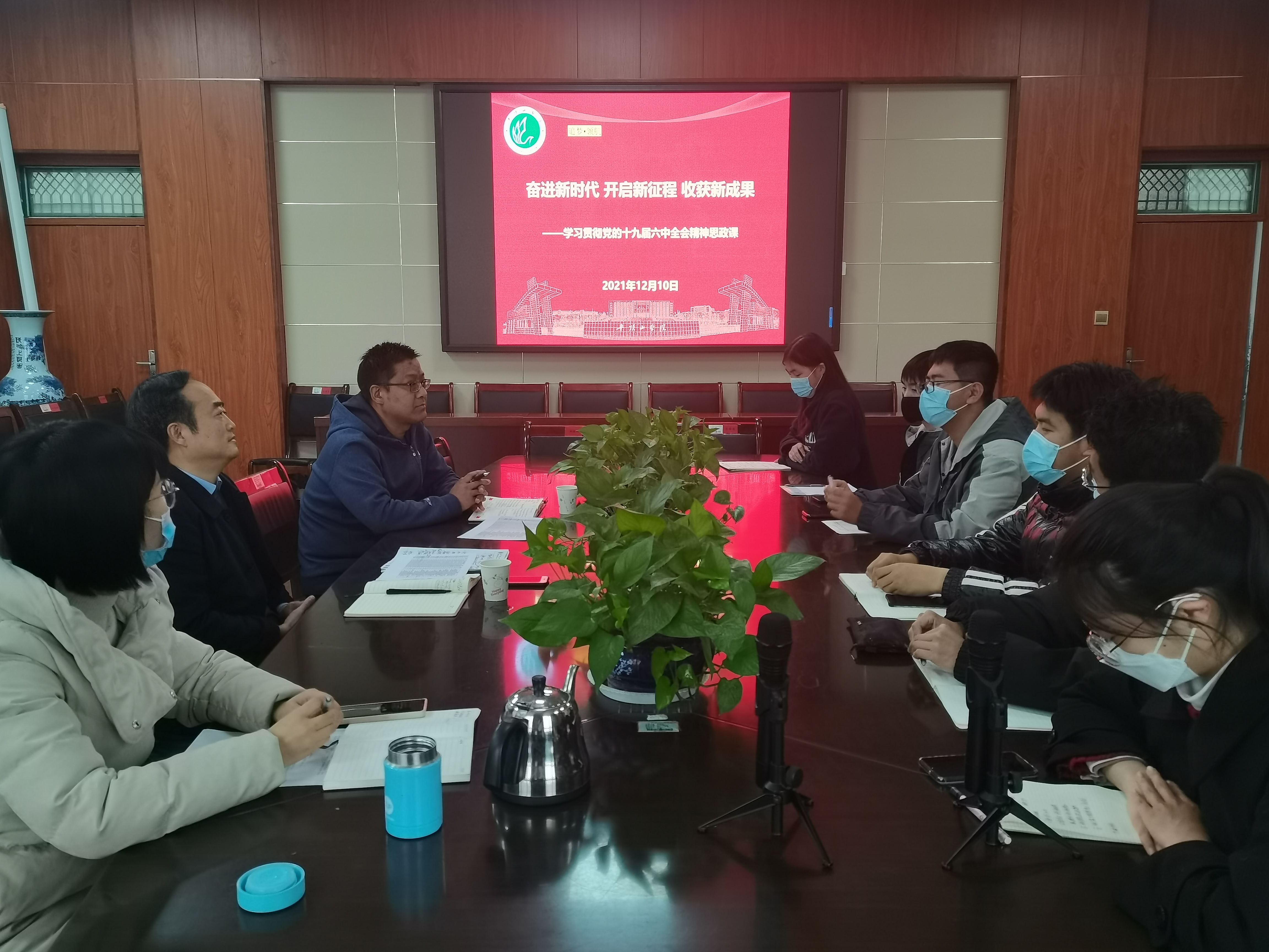 授课开始前,同学们先做了交流发言,谈了学习党的十九届六中全会精神认识体会。之后,张高峰书记重点从党的十九届六中全会召开的背景、重大意义和对全会审议通过的《决议》的解读出发,详细阐释了学习领会党的十九届六中全会精神的丰富内涵和核心要义的重要意义。接着,张高峰书记结合工作实践,讲解了对全面从严治党的理解。最后张高峰书记希望同学们要把学习党的十九届六中全会精神和学习党史结合起来,深刻认识党的百年奋斗的重大成就和历史经验、深刻认识中国特色社会主义新时代的历史性成就和历史性变革,从而深刻理解中国共产党为什么“能”、马克思主义为什么“行”、中国特色社会主义为什么“好”的道理。张高峰书记还对同学们如何在奋进新时代、开启新征程的道路上加强学习、合理进行大学学习规划和人生规划进行了指导。