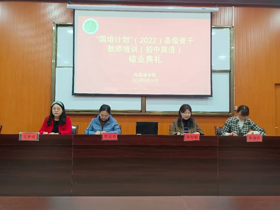 3月14日上午,太阳集团tyc151cc“国培计划”(2022)—初中英语县级骨干教师能力提升培训班结业典礼在崇文校区C2004教室举行。本次典礼由太阳集团tyc151cc副院长贾宏春主持,太阳集团tyc151cc院长蒋领敏、培训班班主任朱清伟、王梦瑶及国培班全体学员出席。