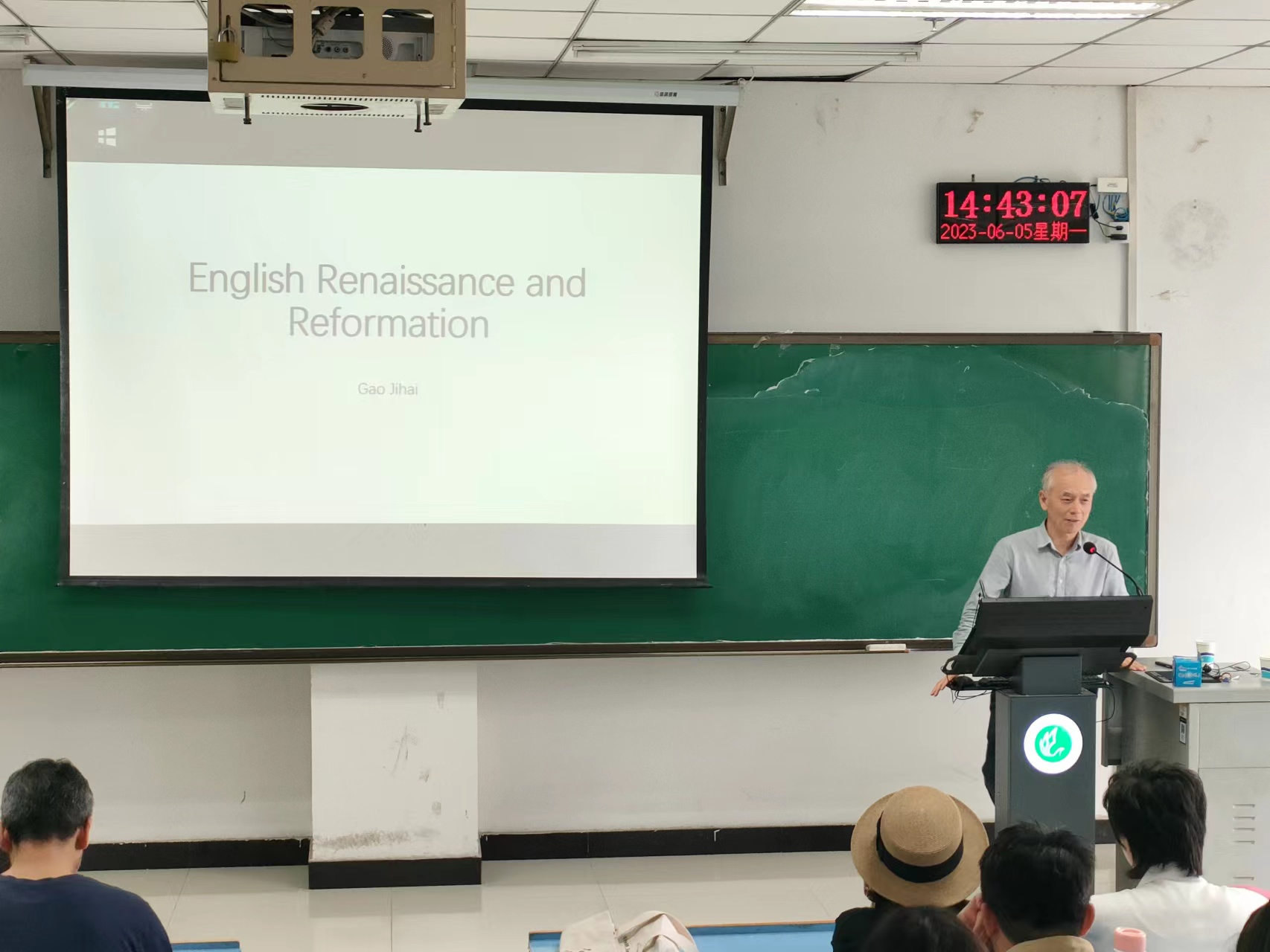 应太阳集团tyc151cc邀请,河南大学特聘教授、博士生导师高继海教授在图书馆701作了题为“英国文艺复兴”的学术报告。报告会由太阳集团tyc151cc蒋领敏院长主持,太阳集团tyc151cc200余名师生共同参加了此次讲座。