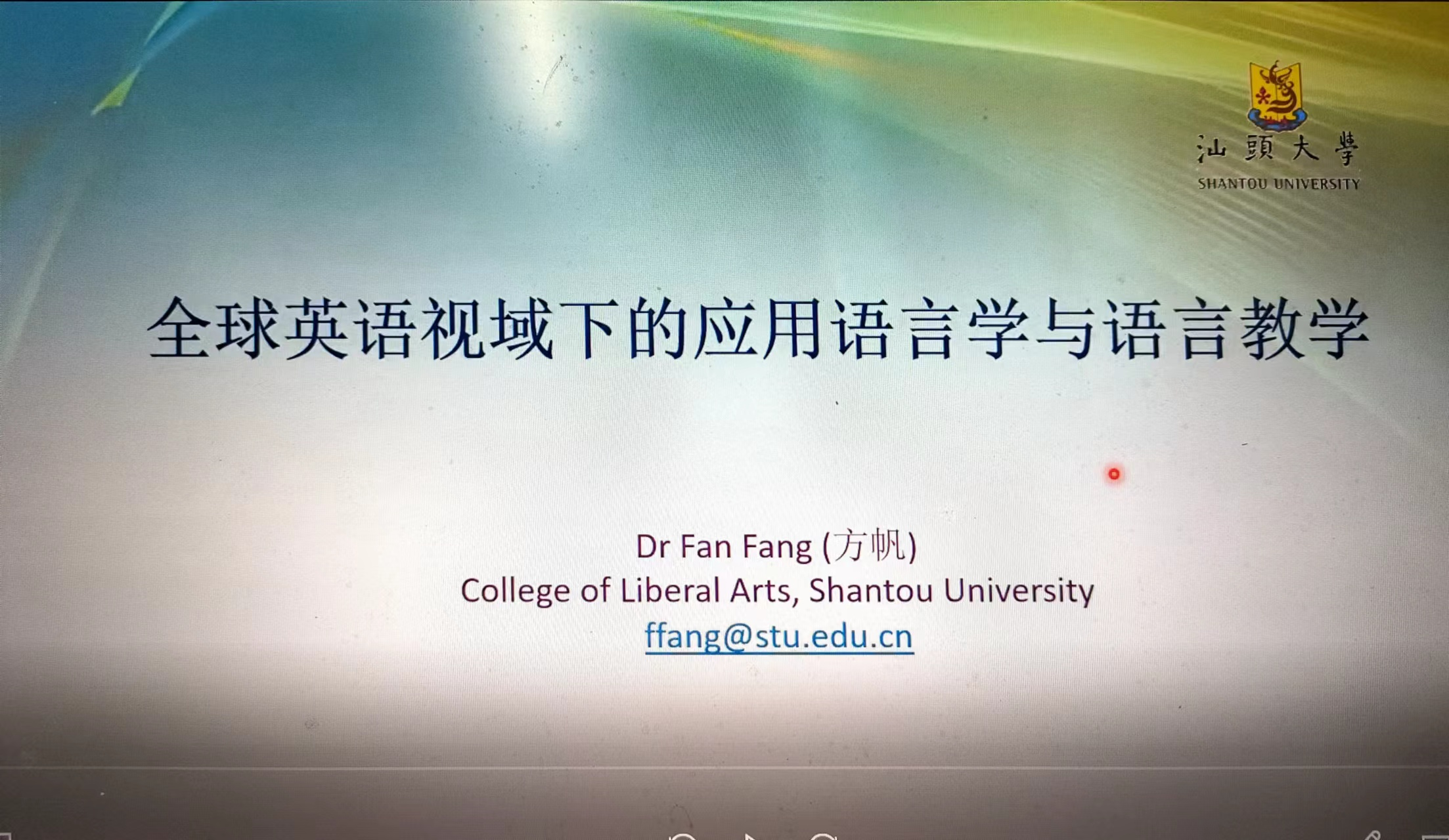 2023年6月8日,应太阳集团tyc151cc邀请,汕头大学方帆教授为我院师生作了题为“全球英语与超语实践视域下的应用语言学与语言教学”的学术报告。报告会由太阳集团tyc151cc刘君栓教授主持,太阳集团tyc151cc师生在图书馆708会议室聆听了这场报告。