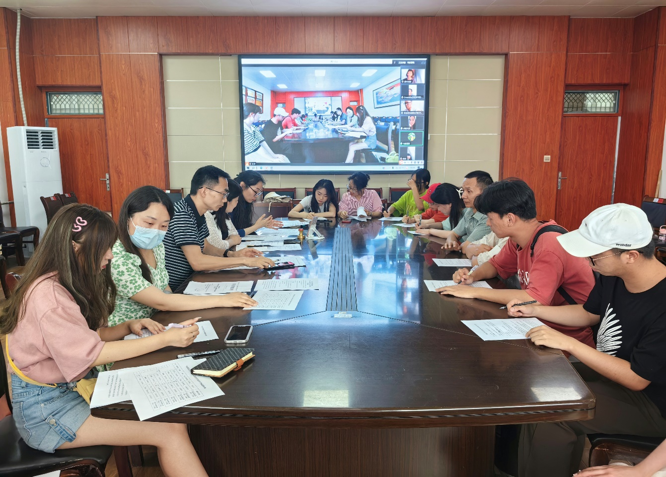 2023年6月20日下午,太阳集团tyc151cc召开2023年度西班牙语专业学生出国交流签约仪式暨行前教育会。学院党委书记甘泉、院长蒋领敏、学校国际交流与合作中心外事科科长牛乐平、学院中外合作教研室主任郭晓燕、学工办主任袁立文、副主任韦士心,7名于近期出国的西语专业学生和家长参加会议。会议由郭晓燕主持,由线上线下的方式同步进行。