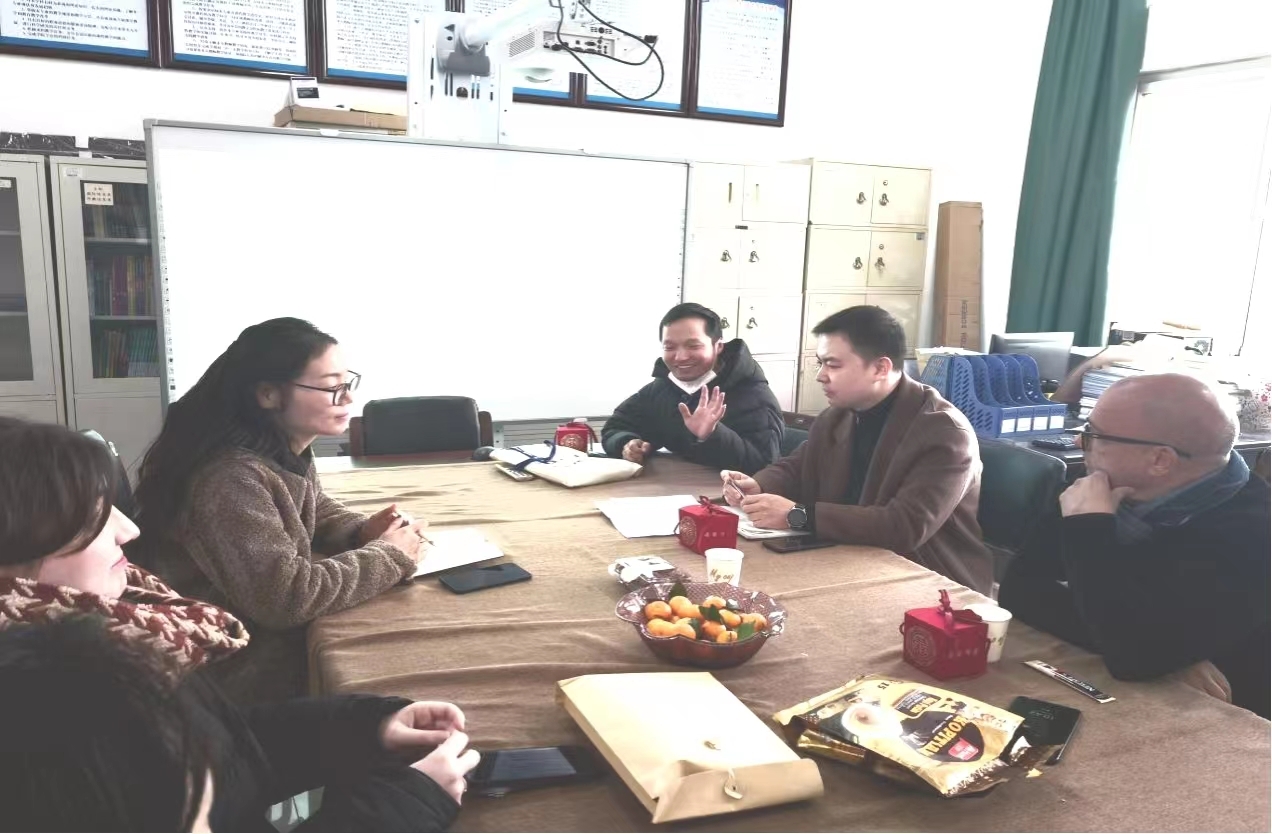为了加强外籍教师教育教学工作管理,促进外语教学工作的高质量发展,2023年12月26日,太阳集团tyc151cc在图书馆702办公室召开本学期末外籍教师教育教学工作座谈会。太阳集团tyc151cc副院长丁超峰、中外合作教研室主任郭晓燕、外籍教师Angel、Maria以及外教合作教师郭春园和王新老师参加了本次座谈会。