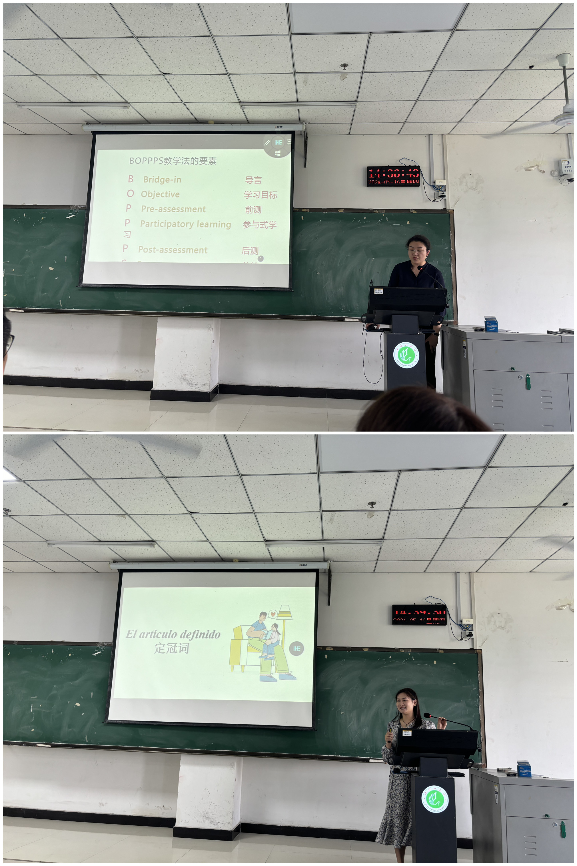 本次培训分为BOPPPS教学法培训、课程案例演练与研讨两个部分进行。毛晋华老师对BOPPPS教学法拆分出导言、学习目标、前测、参与式学习、后测、总结六个板块进行讲解。她强调,BOPPPS教学法的核心是“以学生为中心的参与式讲授”。随后,李媛媛老师带领全体老师通过参与一节西语课堂的方式对BOPPPS教学法的核心理念进行了实操演练。以此为抓手,全院教师对BOPPPS教学法各部分可参考的实践方法进行了交流研讨,从金课的教学理念、教学设计与创新、鼓励学生全面深度的参与课堂等方面进行了交流讨论。