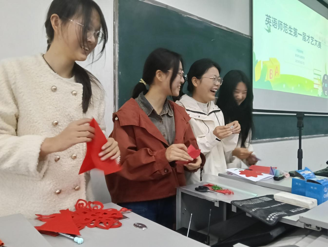 在比赛现场,选手们通过英语歌曲演唱、舞蹈表演、剪纸艺术、英语配音、手工折纸等多种形式,充分展现了英语师范生的专业素养与艺术风采。经过激烈角逐,李韫哲、侯昕雨、王曌、吕萍、孙佳丽等同学凭借出色的表现脱颖而出。