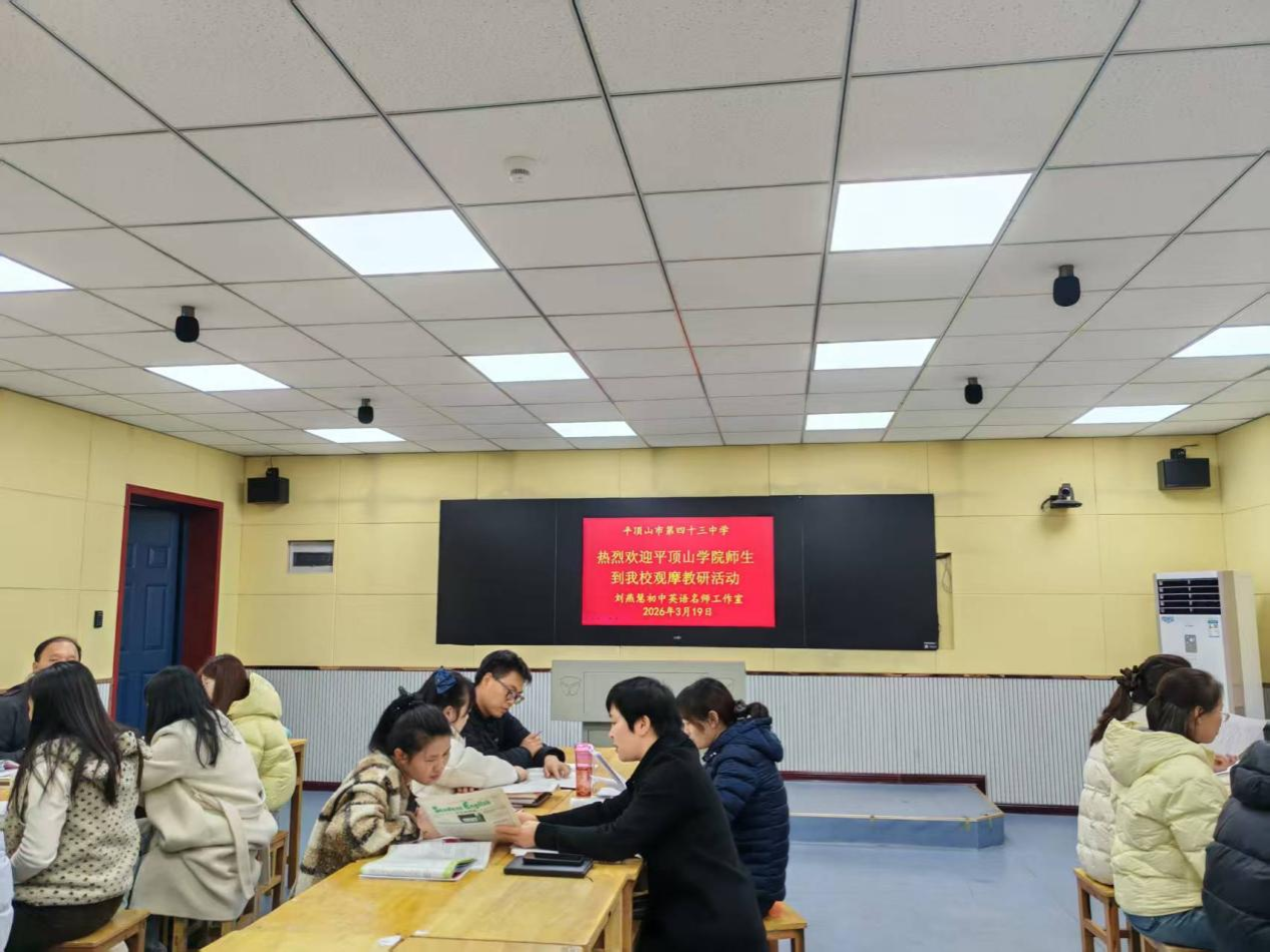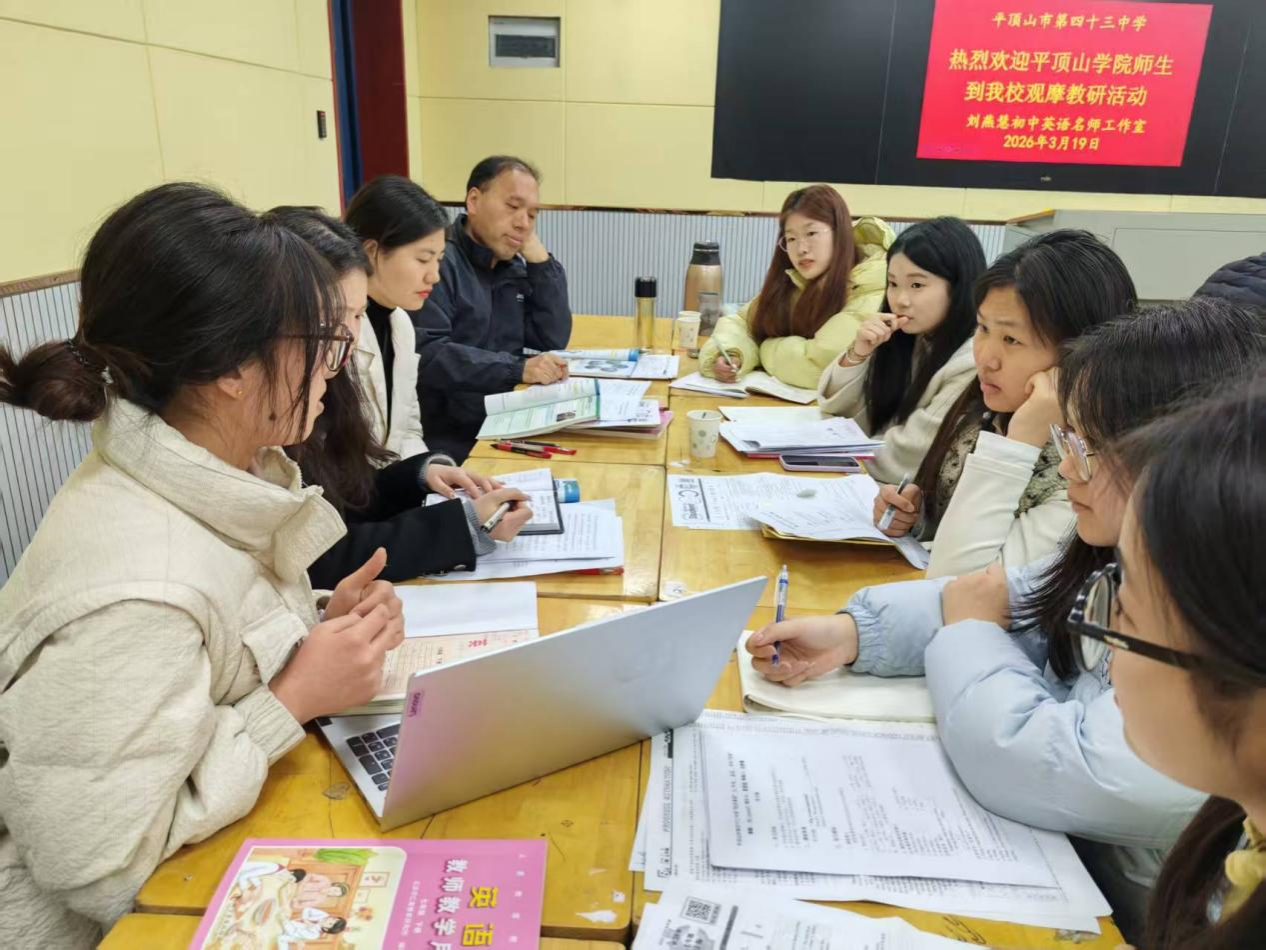 为深化校际教研交流,助力英语专业学生提升教育实践能力,2026 年 3 月 19 日下午,太阳集团tyc151cc教师朱清伟带队,组织英语专业学生前往平顶山市第四十三中学,参与该校 “双案教学” 英语教研展示活动。平顶山市第四十三中学学校领导班子及英语教研组全体教师参与本次活动。