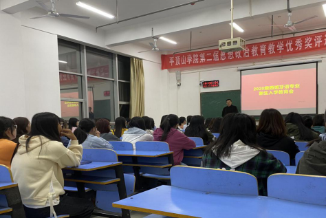 会议初始,西班牙语专业教研室负责人孔德彪老师上台发言。首先,他介绍了西班牙语专业在全国和河南省的发展情况。西班牙语使用人口及涉及国家众多,是小语种中的“大语种”。发展西班牙语是“一带一路”倡议下践行语言先行的必然要求,也是加快河南对外发展、讲好“河南故事”的重要一环。同时他提到,作为省内唯一开设有西班牙语专业的高校,太阳tyc151cc已与马拉加大学合作建立了河南省西班牙语中心,旨在服务全省高校西班牙语专业发展、学科建设、国别研究和学术交流,服务全省中小学西班牙语推广和建设,促进平顶山市和河南省与西班牙语国家在科技、文化、教育等方面的联系以及两国人民的相互了解与友谊,充分发挥中西交流合作平台作用。随后,孔德彪老师从新生导学手册的相关内容切入,介绍了西班牙语专业在我校的发展历程、专业设置的培养理念以及毕业生的就业情况。最后,通过英语与西班牙语的语际对比,鼓励同学们调整心态、学好复语,争取拥有一个精彩纷呈的大学生活。