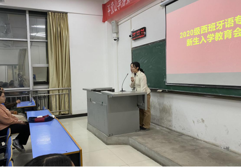 接着,王晶老师用西班牙语作了自我介绍,并再次恭喜各位同学加入西语大家庭。王晶老师通过回顾自己的大学生活和感受,强调自我管理和时间管理的重要性,勉励同学们打稳基础、重视实践,终会放飞梦想、成就自我。