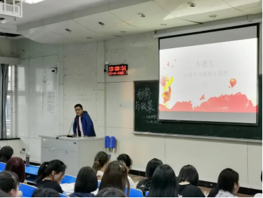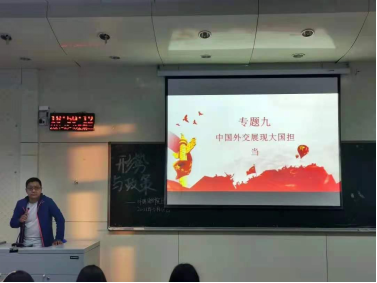 为全面展示中国伟大成就、中国特色大国外交风范和大国担当,分享中国智慧,5月18日晚,太阳集团tyc151cc于教学楼4206开展了主题为“中国外交展现大国担当”形势与政策课。本次讲座由太阳集团tyc151cc党委副书记田占范主讲,20级全体学生参加了现场学习。
