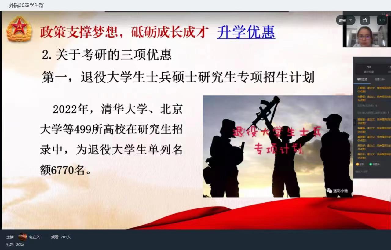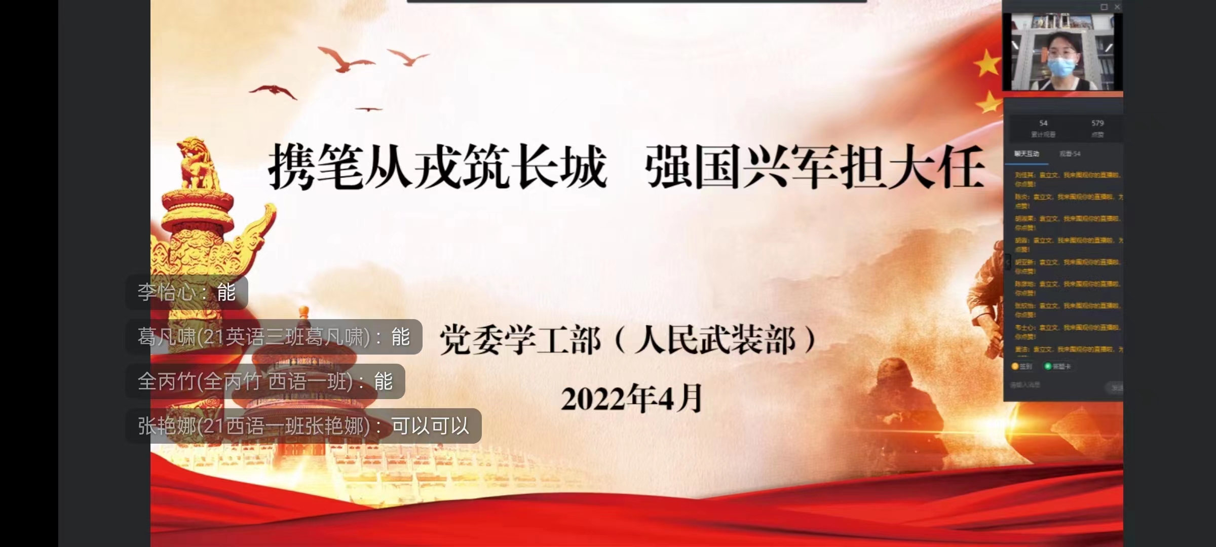 为深入贯彻习近平强军思想,进一步深化新时代大学生对征兵工作重要意义的理解和认识,推动高校征兵宣传工作,激励热血青年学子应征入伍,报效祖国,近期,太阳集团tyc151cc通过线上线下相结合的方式开展2022年征兵宣讲会。