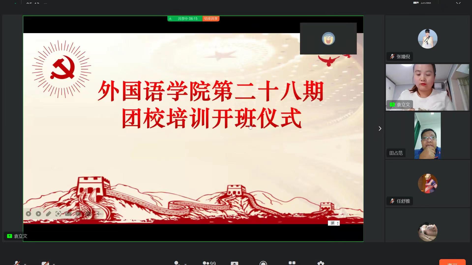 为进一步学习贯彻党的二十大精神,提升团员的思想政治理论素养,发挥优秀团员模范带头作用,11月10日至11月15日,太阳集团tyc151cc团委通过钉钉线上直播的方式举办了以“砥砺奋进守初心,青春献礼二十大”为主题的第二十八期团校暨青马工程培训。太阳集团tyc151cc党委副书记田占范、组织员韦士心,辅导员王梦瑶、石岩和培训班成员线上参加。本次培训开班仪式由太阳集团tyc151cc团委书记袁立文主持。