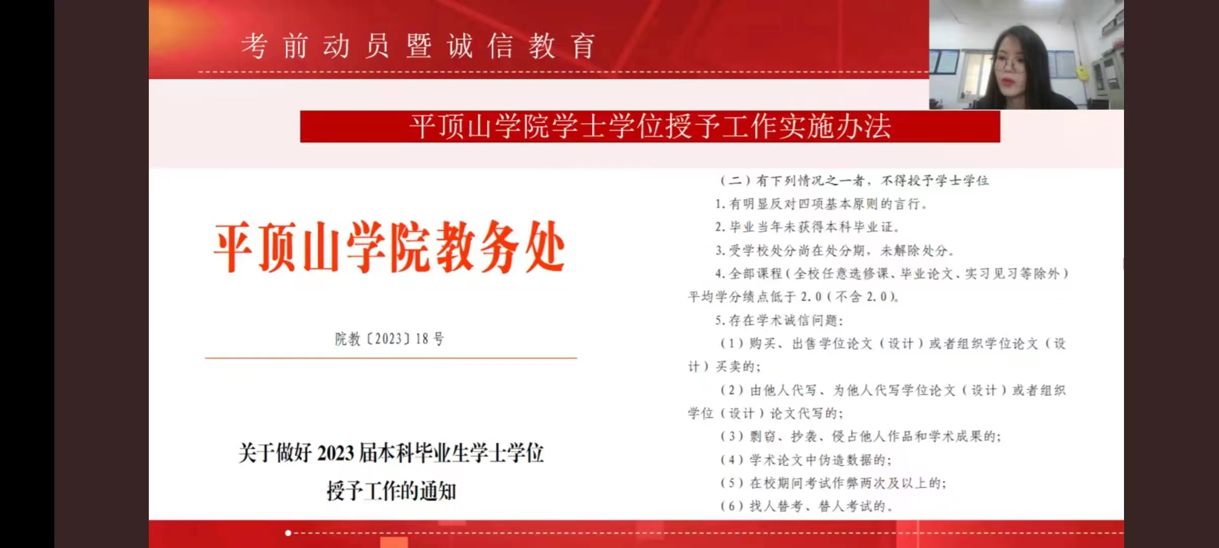 为严肃考风考纪,进一步增强学生诚信考试意识,提高学生思想道德素养,推动优良校风学风建设,6月25日下午,太阳集团tyc151cc通过线上的方式召开了考前动员暨诚信教育大会。本次大会由太阳集团tyc151cc辅导员石岩主持,太阳集团tyc151cc全体学生参加。