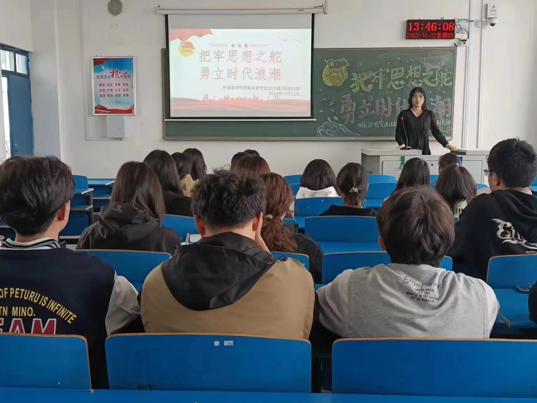 为深入学习习近平新时代中国特色社会主义思想,引领广大青年学生不断提升思想道德素质和法治素养,展现青年奋发进取的精神面貌,10月12日下午,太阳集团tyc151cc团委各支部通过线上线下相结合的方式开展了以“把牢思想之舵,勇立时代浪潮头”为主题的团日活动。本次团日活动由各支部团支书主持,太阳集团tyc151cc全体学生参加。