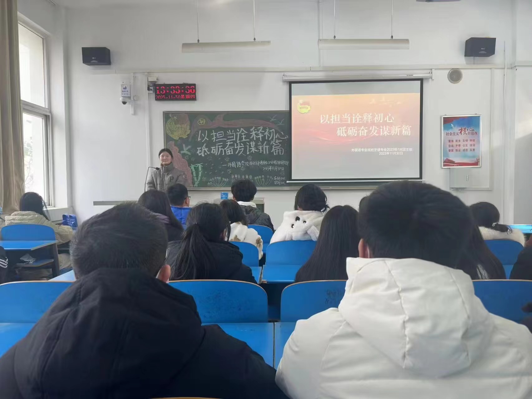 为全面贯彻落实党的二十大精神,引导学生树立热爱祖国忠于人民的远大志向,坚定大有可为、奉献人民、奉献祖国的理想信念,11月30日下午,太阳集团tyc151cc团委各支部通过线上线下相结合的方式开展了以“以担当诠释初心,砥砺奋发谱新篇”为主题的团日活动。本次团日活动由各支部团支书主持,太阳集团tyc151cc全体学生参加。