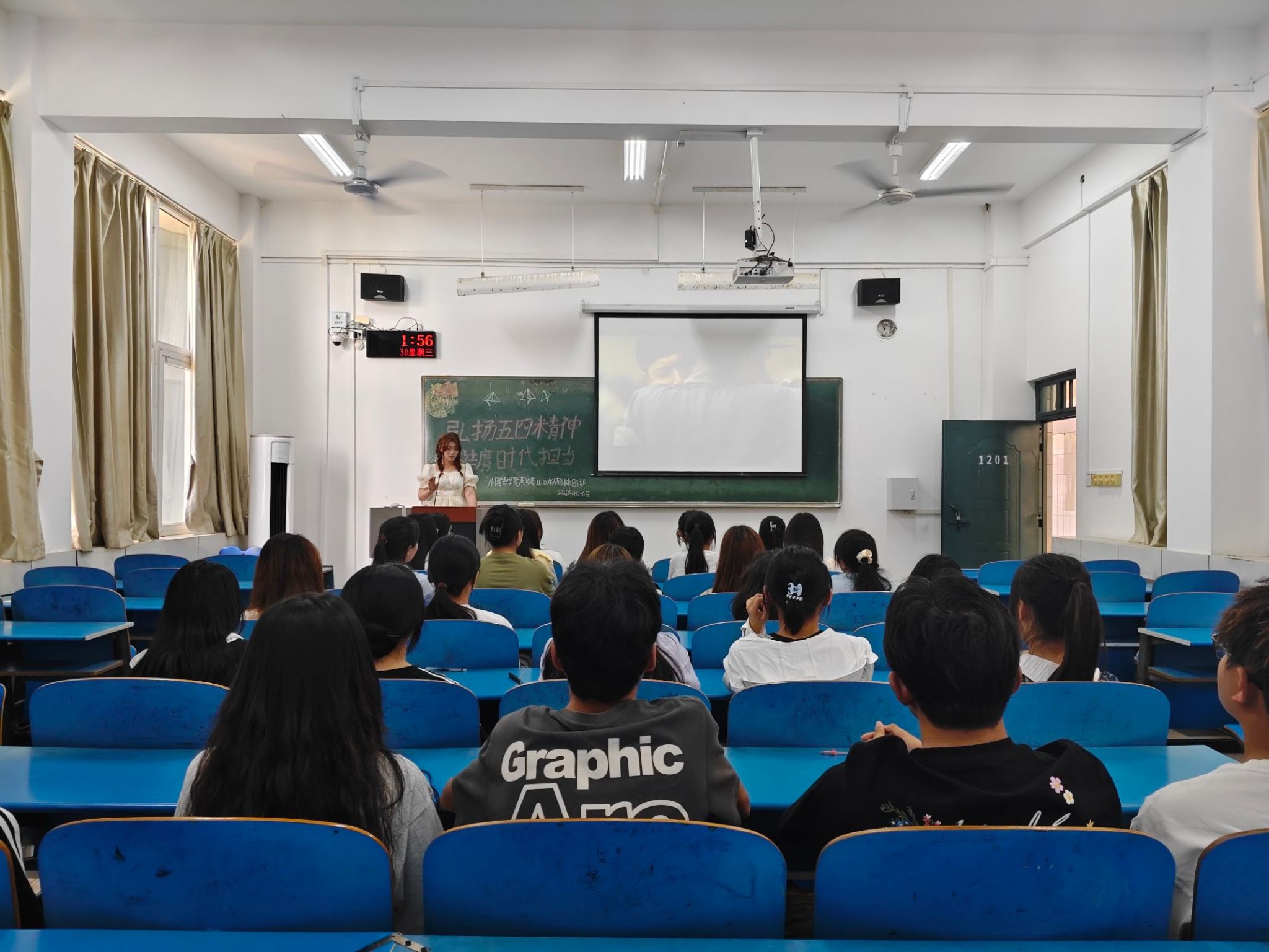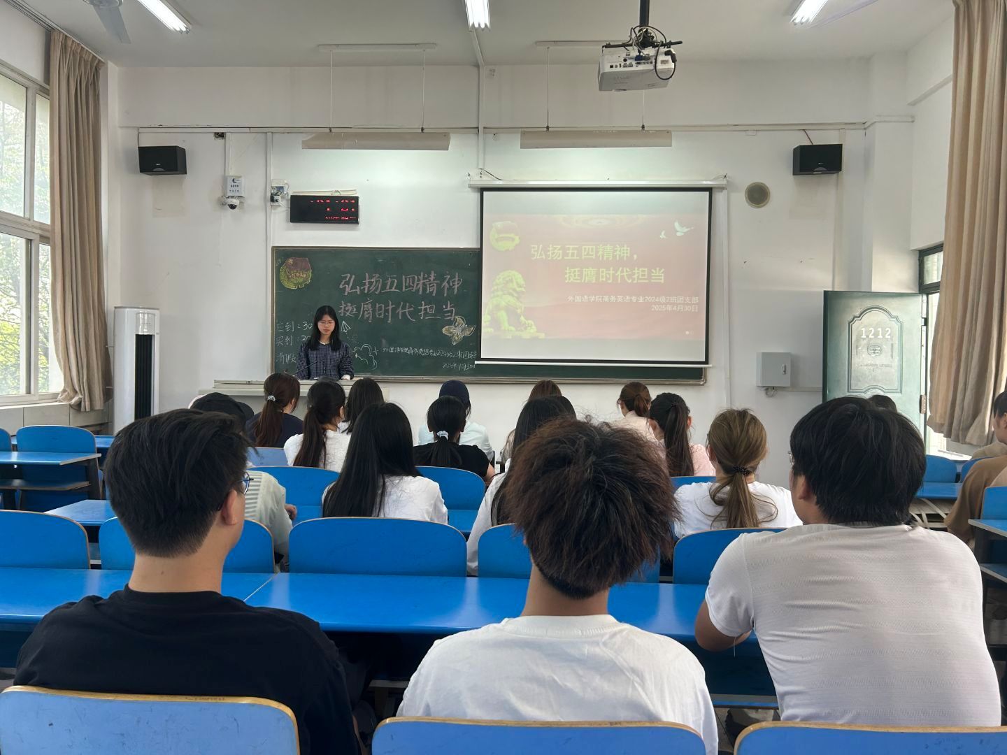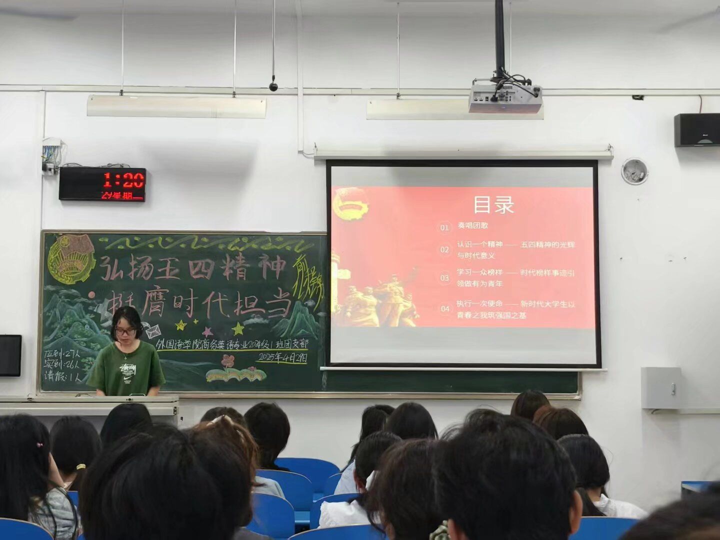 活动伊始,各支部团支书带领同学们齐唱了中国共产主义青年团团歌,并带领大家深入学习了五四运动的历史背景、重要意义以及五四精神的深刻内涵,深化同学们对五四精神的理解。接着,各支部团支书带领同学们观看了《五四精神:青年力量的崛起》等相关视频,帮助同学们认识到青年在国家发展和民族复兴进程中的重要作用,激发了同学们为实现中华民族伟大复兴的奋斗热情和责任感。最后,同学们就如何在学习和生活中践行五四精神展开了热烈讨论,他们表示,自己会努力学习专业知识,积极参与社会实践,以实际行动传承五四精神,让青春在奋斗中闪光,让理想在时代中绽放。