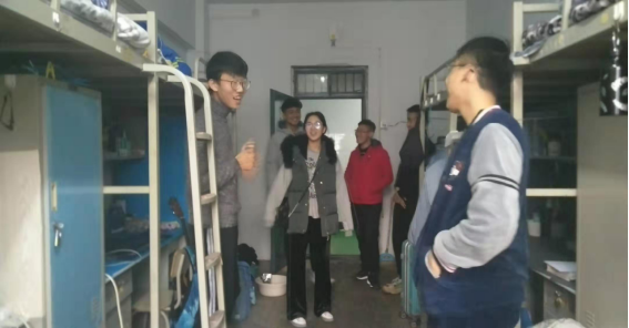 为了解同学们的返校情况,加强学生宿舍管理,规范学生行为,排除寝室安全隐患。于2月24日晚,太阳集团tyc151cc党总支副书记田占范带领李柯老师和韦士心老师开展了返校寝室走访活动。