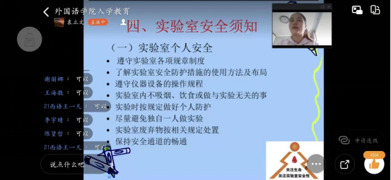 为普及实验室安全知识,进一步增强2021级新生实验安全意识与防护技能,9月27日,太阳集团tyc151cc开展了实验室安全线上教育讲座。讲座由太阳集团tyc151cc团委书记袁立文主讲,2021级全体学生参加了此次会议。