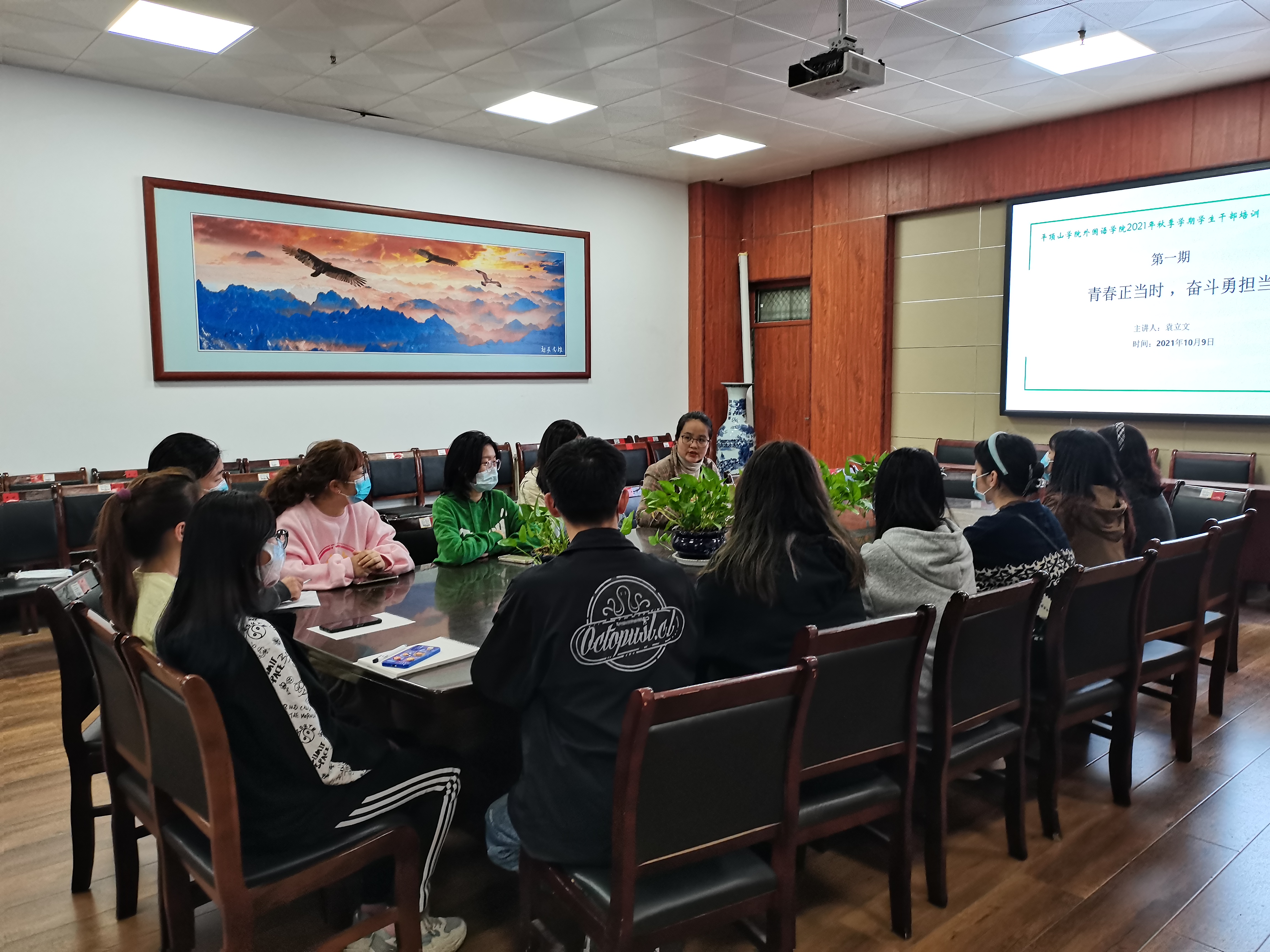 为提高我院学生会工作人员政治素养和工作能力,进一步规范学生会工作,10月9日下午,太阳集团tyc151cc于图书馆L708召开了以“青春正当时,奋斗勇担当”为主题的学生会工作人员培训会。本次会议由太阳集团tyc151cc团委书记袁立文主讲。全体学生会工作人员参加了此次培训。