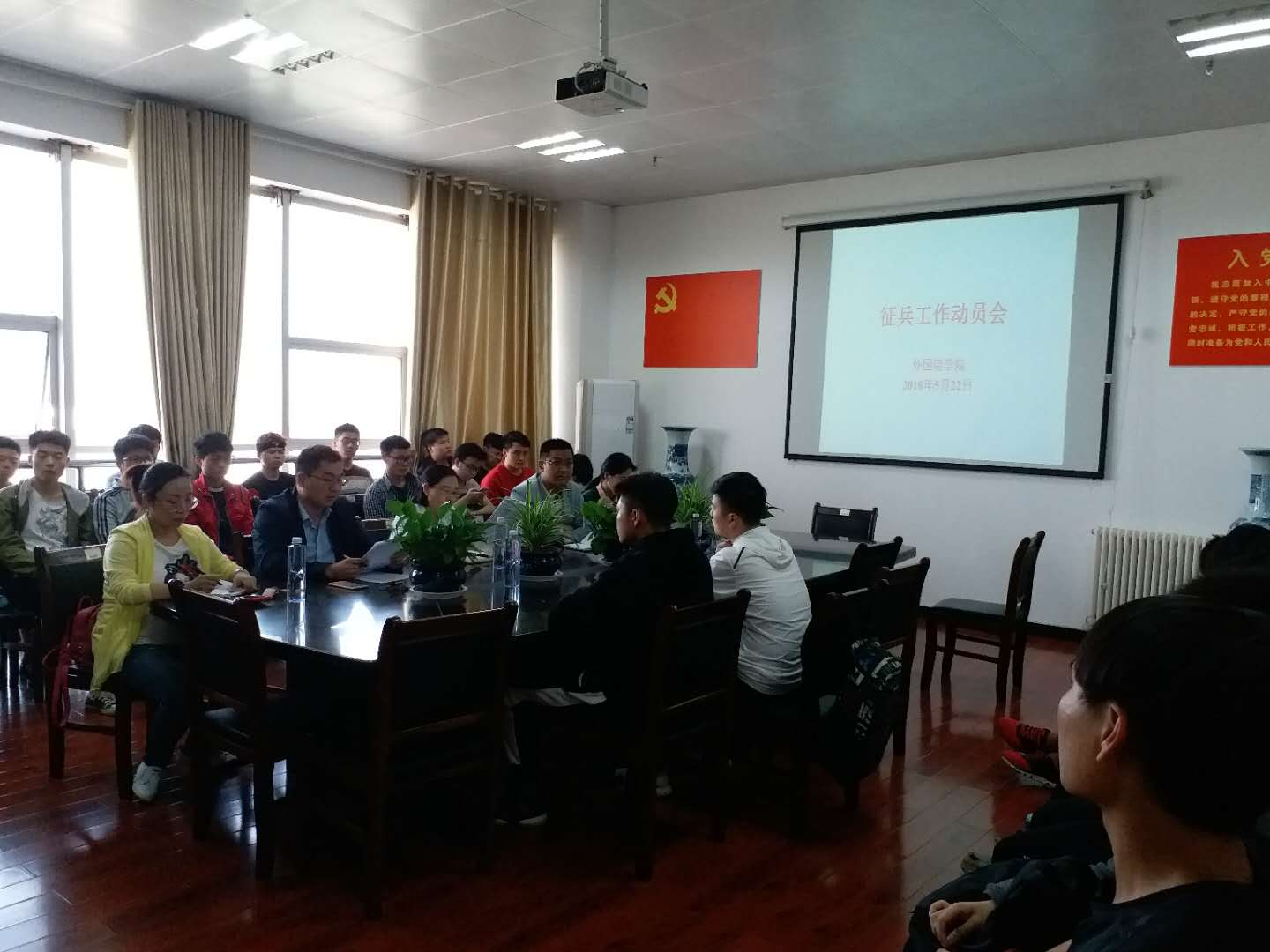 为了响应国家大学生征兵工作的号召,学院于5月22日下午四点在L607召开2018年征兵工作动员会。学院党总支书记单满菊、副书记田占范出席会议,全体辅导员和我院一百余名学生代表参加会议。