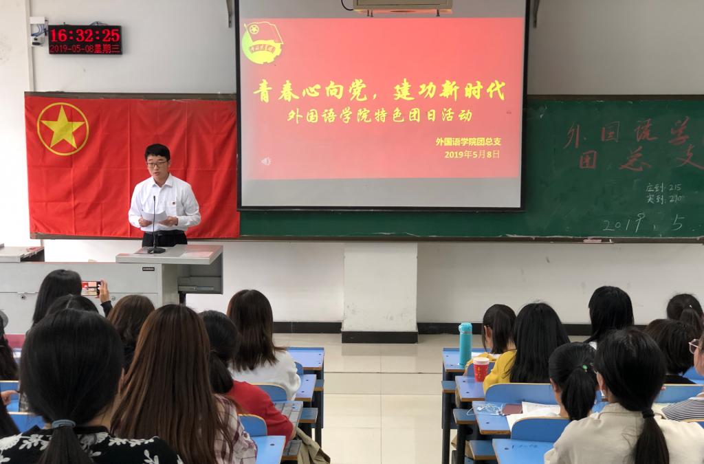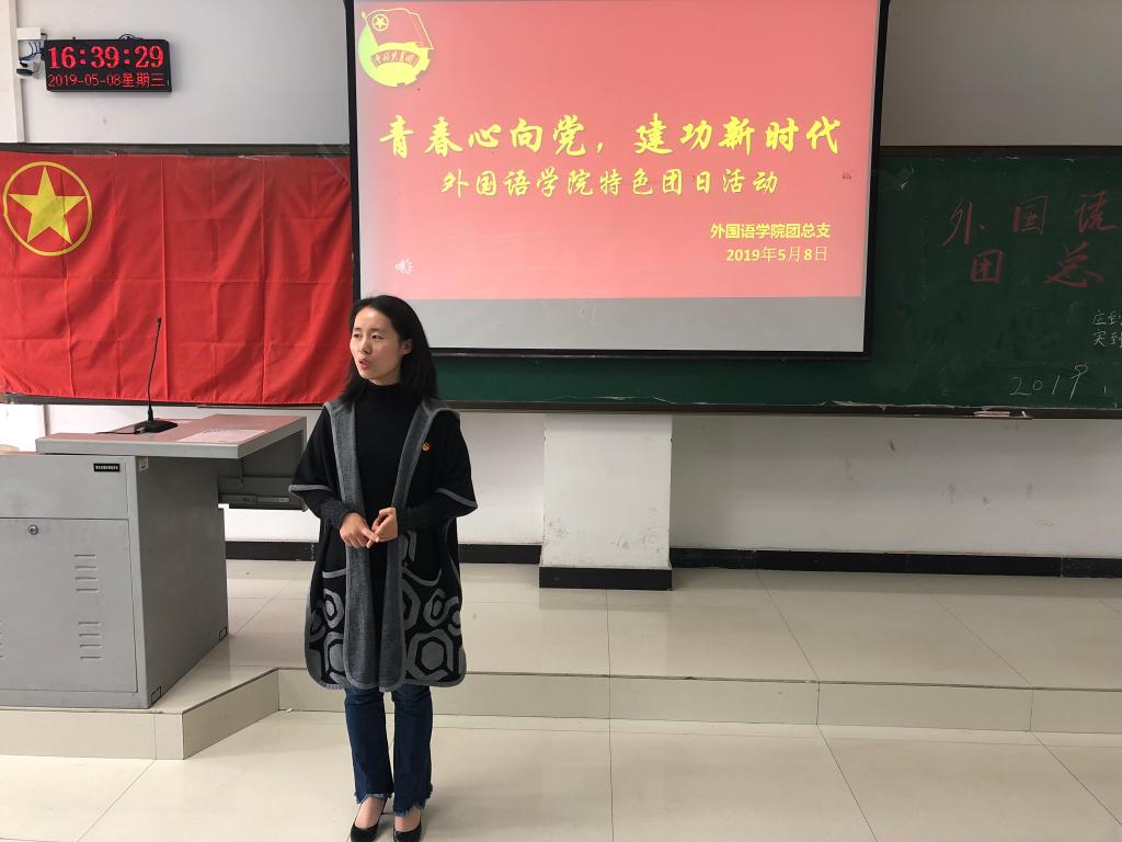 5月8日下午,太阳集团tyc151cc于图书馆615举办了以“青春心向党,建功新时代”为主题的特色团日活动。校团委孔思懿老师、太阳集团tyc151cc团总支副书记李柯老师及18级全体团员参加此次活动。
