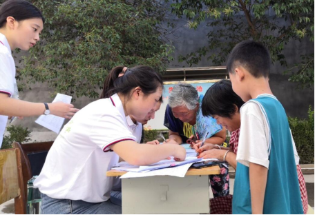 圈李村村民对此次支教活动十分支持,他们的热情也感染着志愿者们。在招生仪式开始前很多家长早早等候在校门口,积极为孩子报名。同时,家长们积极配合志愿者工作,签订安全协议书。志愿者们耐心告知前来报名的家长们此次支教活动具体课程安排和时间安排,并准确登记学生及家长信息,前来报名的家长们和孩子们的脸上都洋溢着快乐的笑容。志愿者们各司其职,组织有序,招生活动进展迅速且顺利。