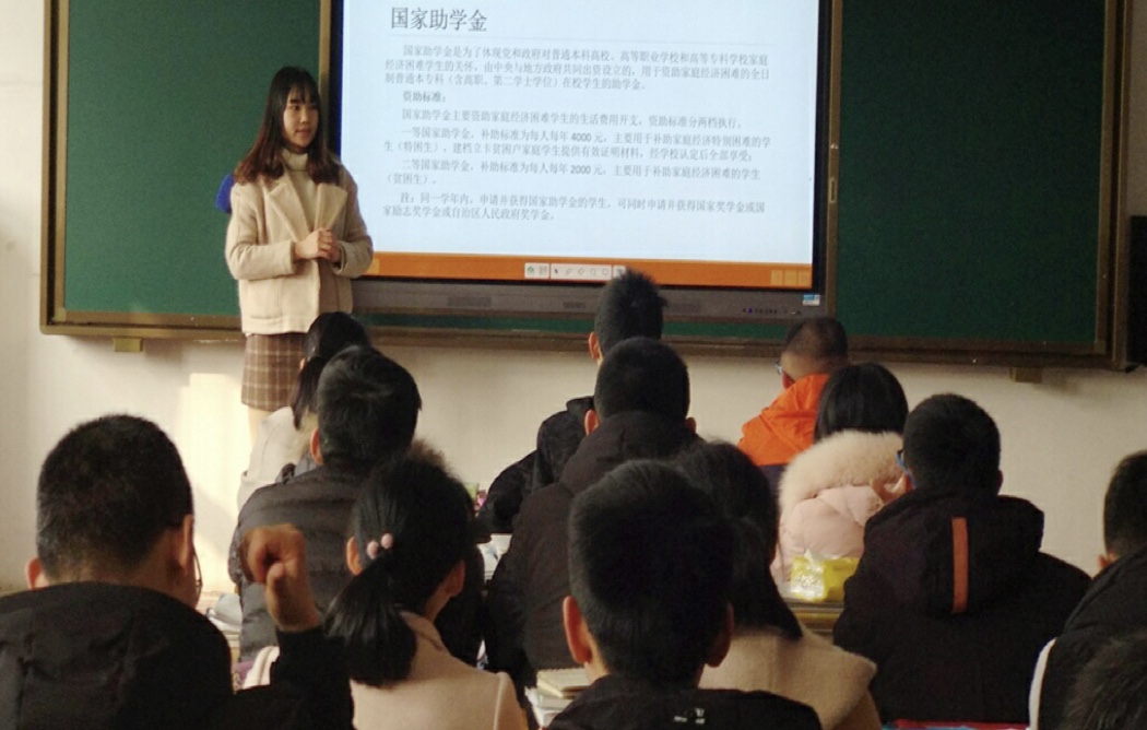 贫困学生资助工作是一项保民生、暖民心,涉及千家万户、关系国计民生的一件大事,事关国家的教育公平和社会的脱贫攻坚,为国家助学政策的实施营造良好的社会氛围,确保政策全面落实到位,并且为了能够更好的宣传国家的资助政策,我院抓住寒假学生放假反乡这一契机,积极引导学生在家乡、母校宣传国家的资助政策,帮助在校的学弟学妹更好地了解国家资助政策,解决从而能够更加放心的学习,提高学习成绩,解决学生以及家长关于费用的担忧和后顾之忧。