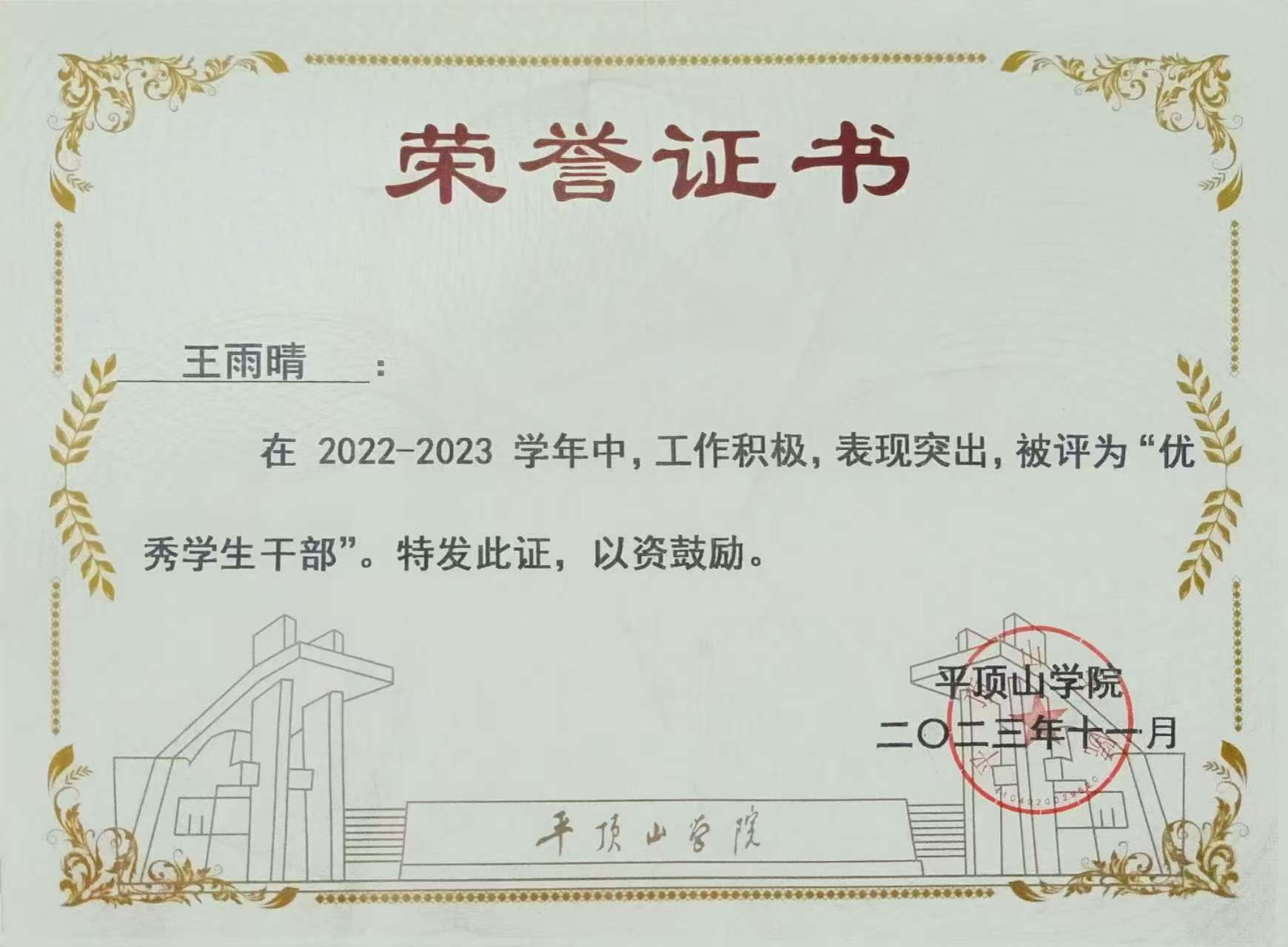 此外,王雨晴还怀揣着“全心全意为同学们服务”的初心加入了学院的团委学生会,积极参加各种学生工作,并利用课余时间与部门人员一同开展志愿服务活动,不断提升自己的组织协调能力。