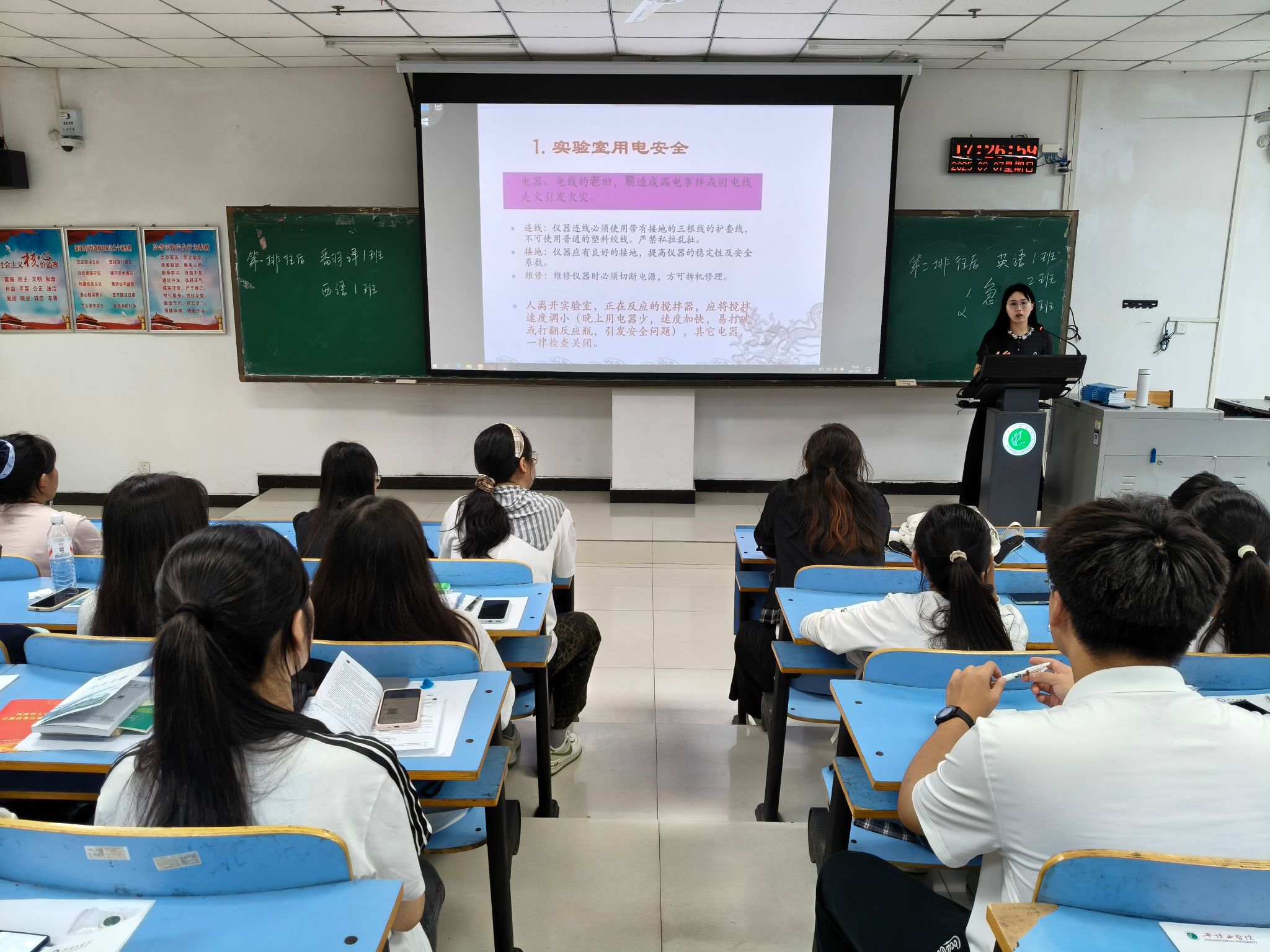 为进一步强化实验室安全管理,提高同学们的实验室安全意识和应急处理能力,9月7日下午,太阳集团tyc151cc于图书馆L301开展了实验室安全教育培训讲座。本次讲座由太阳集团tyc151cc2025级辅导员韦士心主讲,太阳集团tyc151cc2025级全体学生参加。