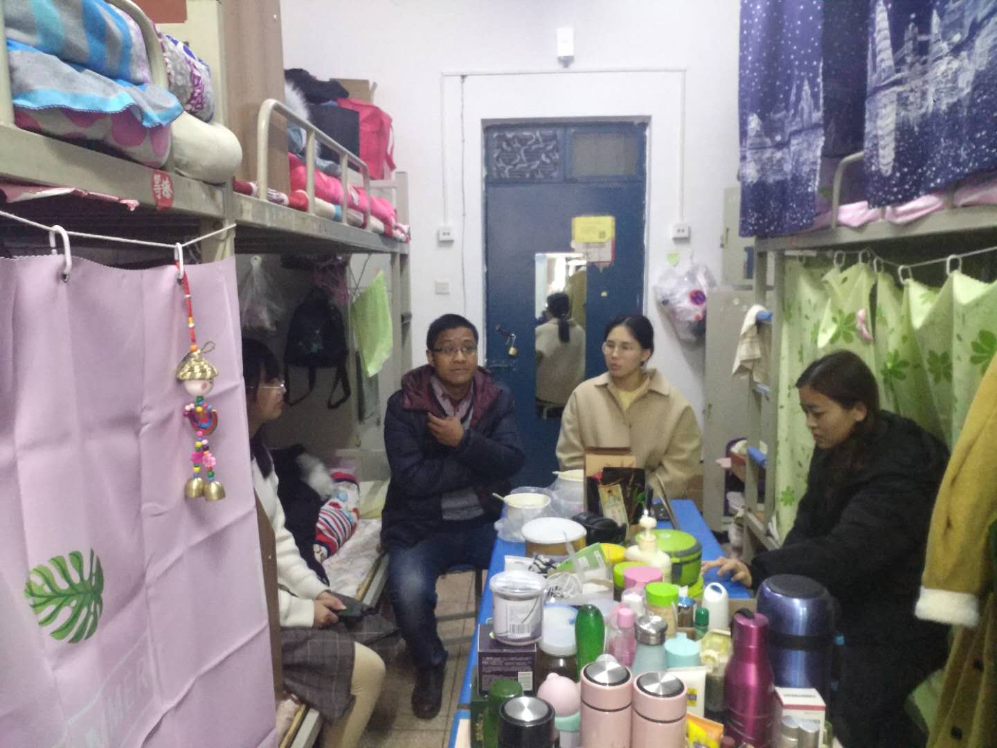 为确保我校研考期间安全平稳、加强对研考期间人员的管理,进一步排查学生宿舍安全隐患,12月22、23日下,在各年级辅导员随同下,党总支副书记田占范深入学生宿舍,检查宿舍安全问题,了解学生期末温书情况。