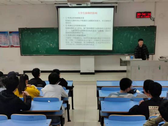为使同学们正视吸烟的危害,戒除吸烟的陋习,促进学生身心健康发展,提升校园安全度,4月21日晚上,太阳集团tyc151cc于图书馆L601开展了无烟宿舍主题宣讲活动。本次活动由太阳集团tyc151cc学生会负责人门胤禛主讲,太阳集团tyc151cc部分学生参加活动。