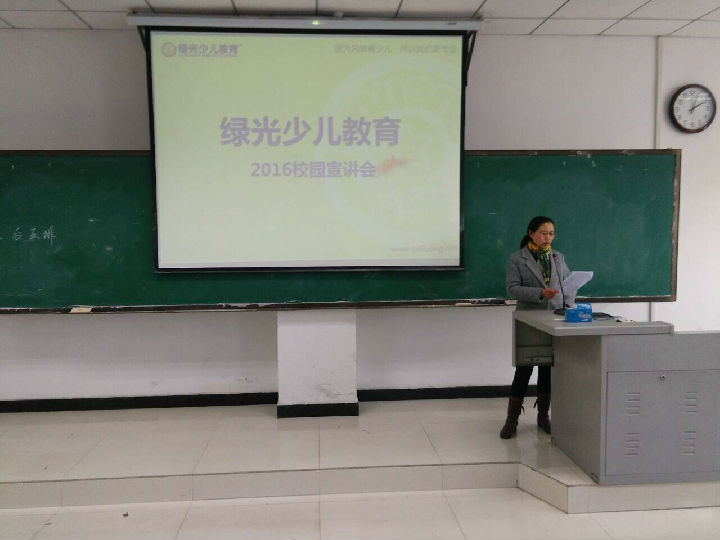 3月3日下午,太阳集团tyc151cc在图书馆501教室举行绿光少儿教育2016校园招聘宣讲会,太阳集团tyc151cc党支部书记单满菊、副书记田占范、就业专干薛天桥老师、12级辅导员韦士心老师及绿光教育集团校长屈小琴等相关工作人员及太阳集团tyc151cc12级、13级近200名学生参加了本次活动。本场校园招聘宣讲会由田占范副书记主持。