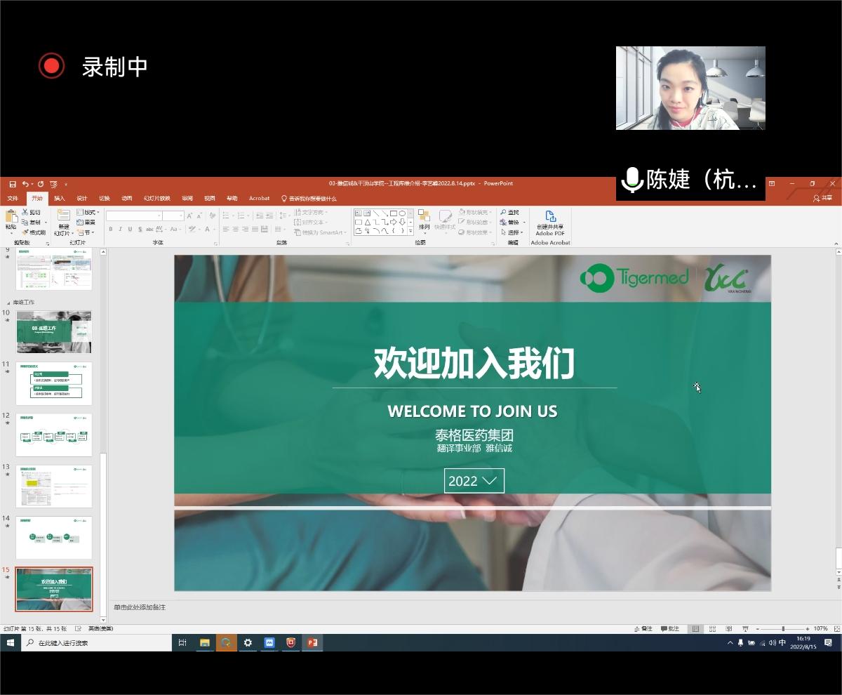 为切实做好毕业生的就业工作,帮助毕业生了解国内外翻译市场的现状和前景,为毕业生提供精准有效的就业信息和就业服务,8月15日下午,太阳集团tyc151cc于腾讯会议开展了泰格医药集团翻译事业部雅信诚公司线上宣讲会,本次宣讲会由雅信诚医学翻译公司人事部经理陈婕主持,雅信诚公司其他部门经理、太阳集团tyc151cc党委副书记田占范、2018级辅导员老师王梦瑶以及部分毕业生参加。