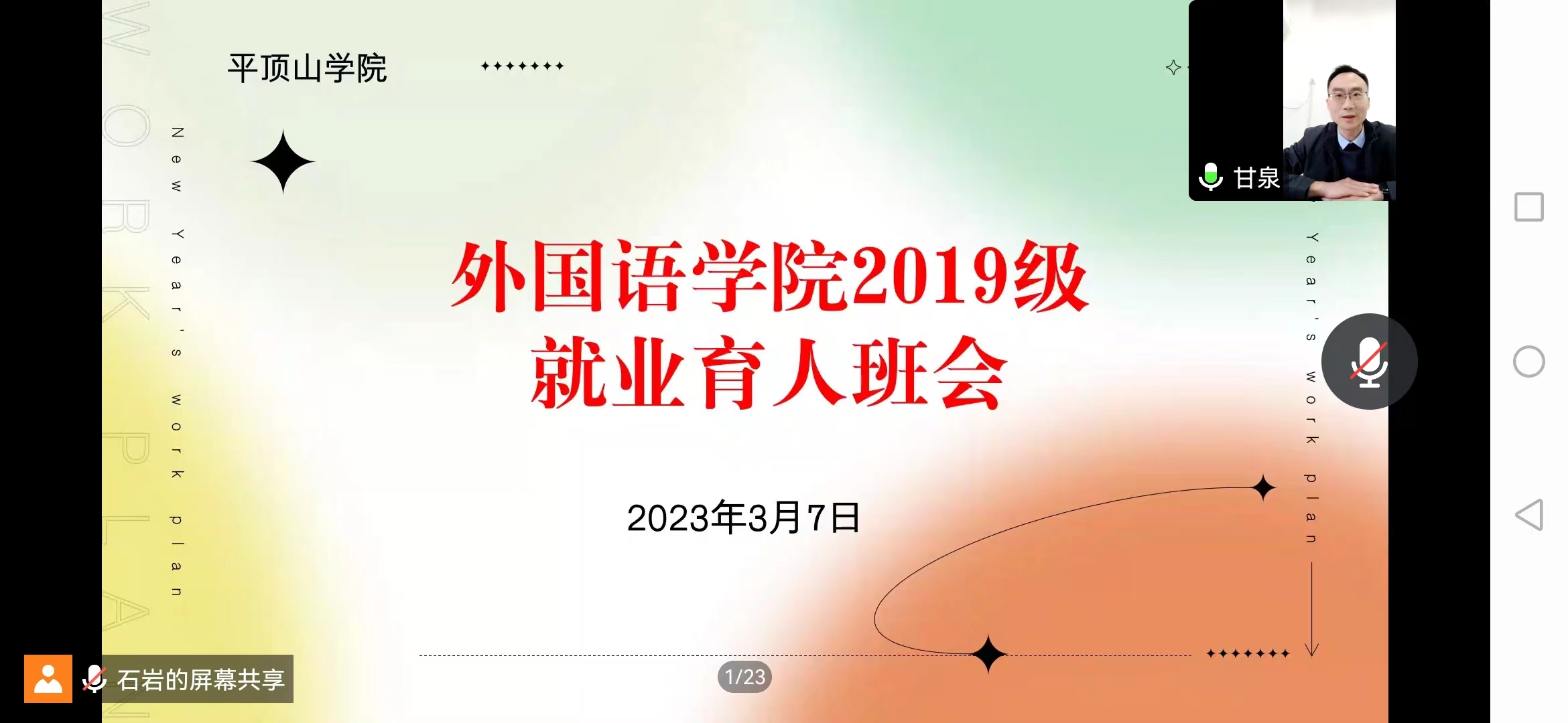 为做好太阳集团tyc151cc2023届毕业生就业工作,帮助同学们了解就业形势,掌握就业政策,促进毕业生高质量就业,2023年3月7日,太阳集团tyc151cc通过腾讯会议方式举行就业育人班会。此次会议由毕业生辅导员石岩主持,学院党委书记甘泉、党委副书记田占范主讲,以及2019级全体学生参与此次育人班会。