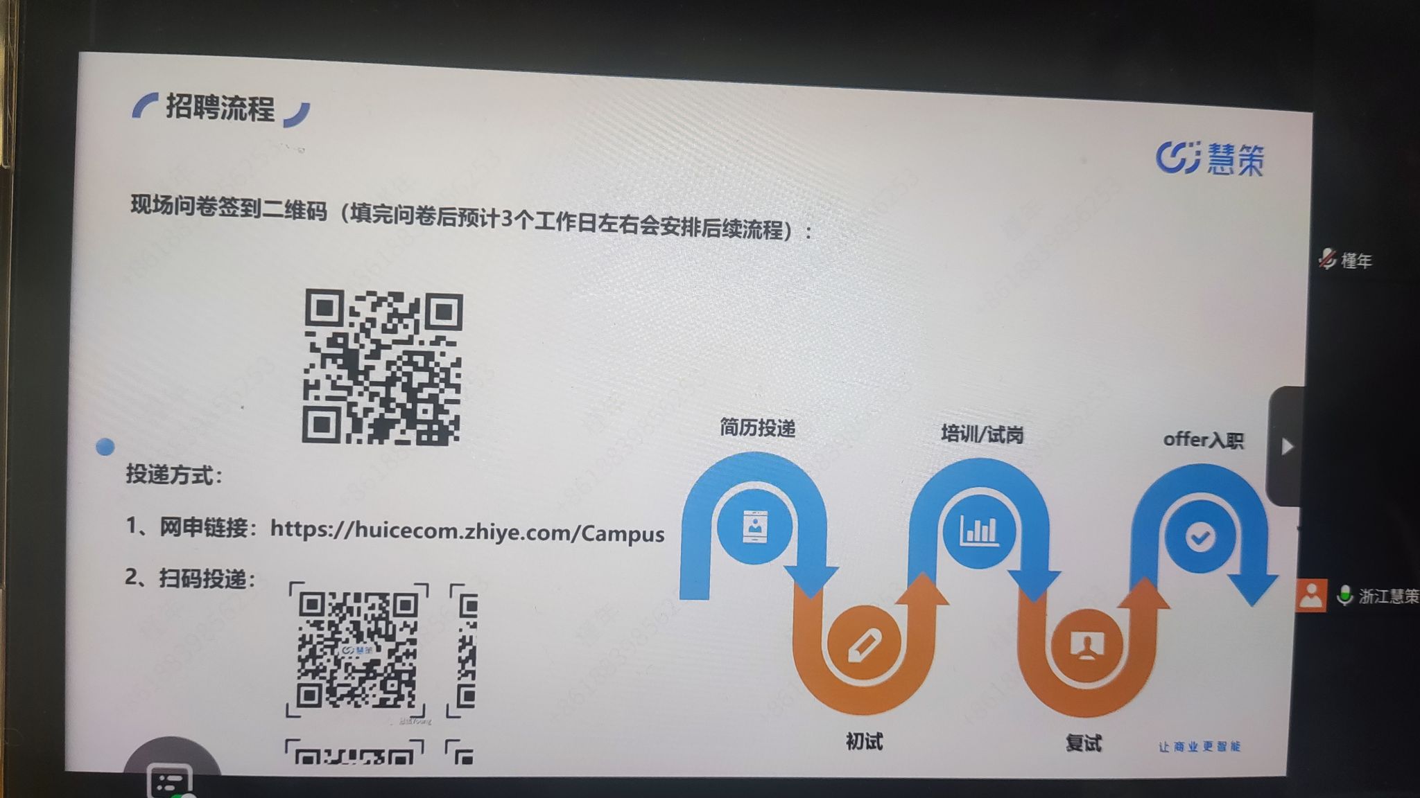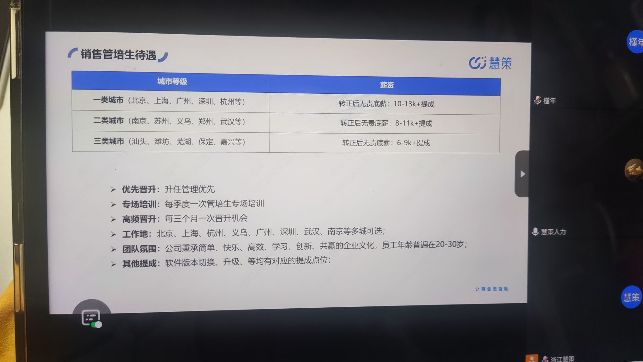 3月12日上午,慧策集团通过腾讯会议为太阳集团tyc151cc学生举办了一场线上校园招聘宣讲会。本次宣讲会由公司人事刘静女士主讲,旨在为2025届应届毕业生和2026届实习生介绍企业情况及招聘岗位信息。
