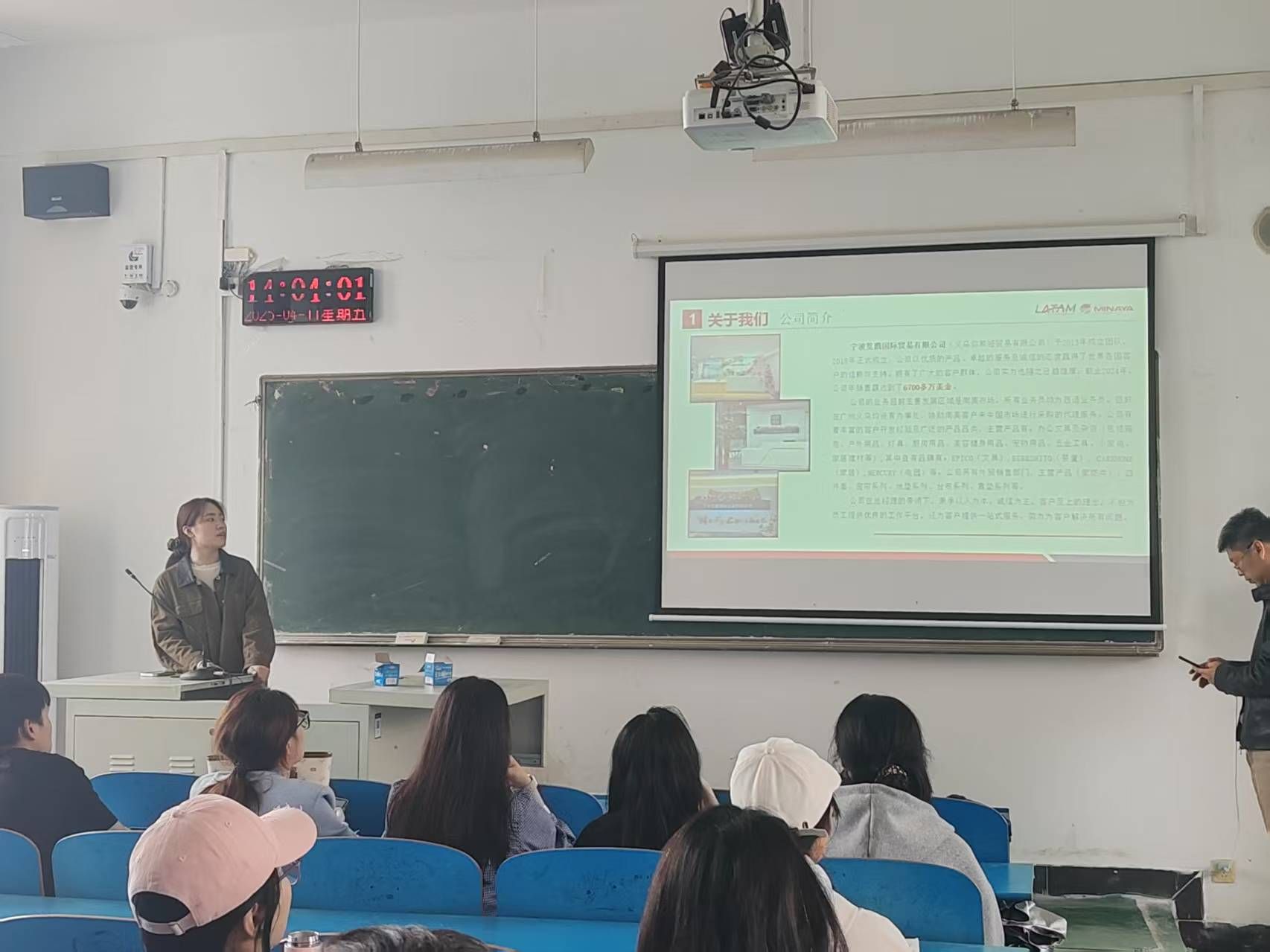 宁波览腾国际贸易有限公司(义乌弥那娅贸易有限公司)2013 年组建团队,2018 年正式注册成立。截至 2022 年,公司年销售额达 5000 多万美金,业务聚焦南美市场,主营产品丰富多样,涵盖文具、家居用品等。此次招聘岗位为小语种外贸业务员(西语、俄语、葡语等) ,年底保薪 10 - 12 万。招聘会上,公司详细介绍了企业发展历程、业务范围、岗位要求及优厚福利,包括重大节日福利、免费旅游、年终奖、带薪假等,还提供系统培训,且周末双休。现场学生积极咨询,投递简历,与招聘人员深入交流。
