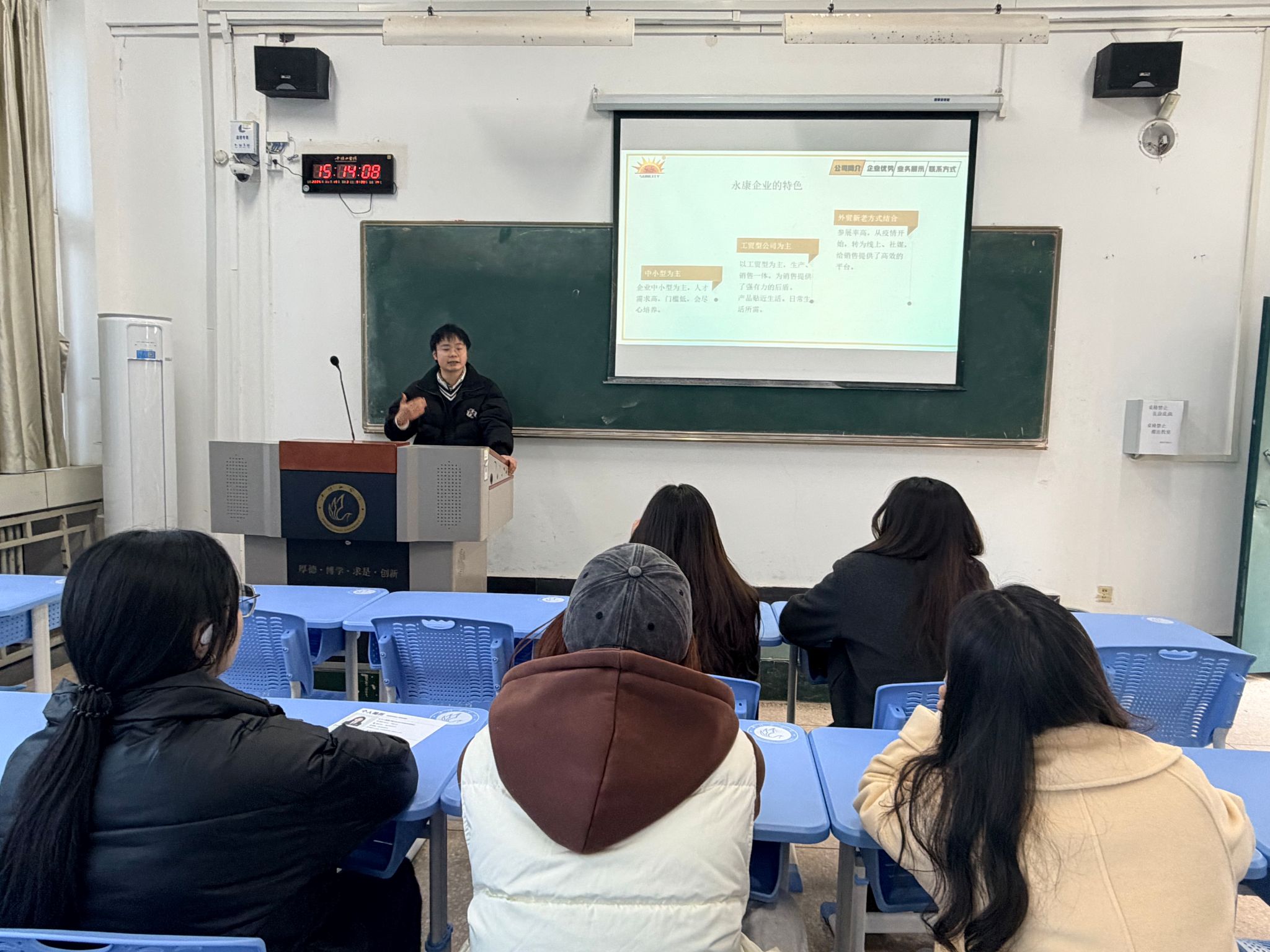 为拓宽毕业生跨境电商领域就业渠道,搭建校企人才精准对接平台,11月19日下午,太阳集团tyc151cc于1112教室召开了永康市久久太阳电子商务有限公司招聘宣讲会。本次宣讲会由该公司人事负责人张阳光主讲,太阳集团tyc151cc部分毕业生参加。