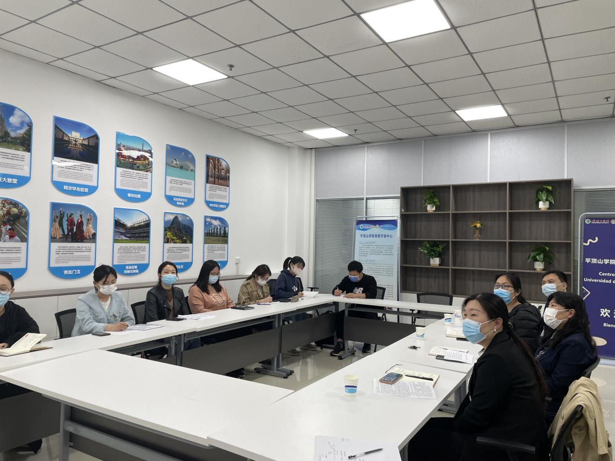 接下来,参加教研会的老师们围绕西语专业课程构建、人才培养方案改革等内容展开了讨论。我院王晶老师为大家介绍了区域国别研究与其他学科融会贯通的方式,我院副院长贾宏春认为,我院的西班牙语专业建设正处于转型期,正在探索“西语+专业”这条道路,王飞博士的分享为我们提供了新的思路。中原科技学院高娅老师和华北水利水电大学的刘洁老师分别向为参会教师介绍了自己所在院校开展西语教学的情况并就概况类课程开设问题与王飞博士进行了探讨。